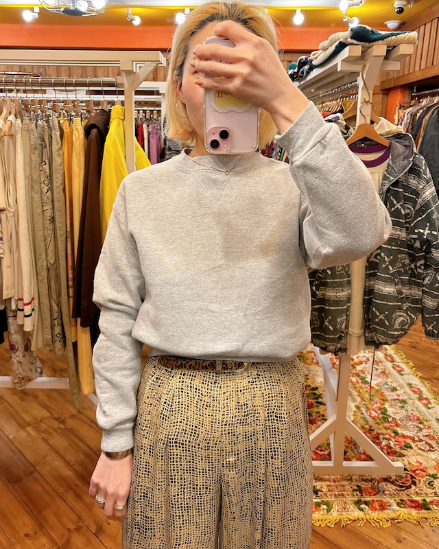 ※こちらはすでに実店舗にて販売しています。 ※Online shop販売開始前にSOLDの場合はあらかじめご了承下さい。 【MAX ACTIVE L/S 無地クルーネックスウェットシャツプルオーバートップス】 ◉肩幅44cm ◉身幅46.5cm ◉袖丈55cm ◉着丈60cm(表記サイズ/YOUTH L) ・コットン50%ポリ50% ・COLOR/グレー ・80-90年代 ・着用者154cm ※ユースサイズのタグ表記ですが大人の女性の方もちょうどよく着られるサイズです!採寸サイズ、着用写真をご覧になってご検討ください。 “商品説明” 平置きでの採寸ですので多少の計測誤差はご了承ください。 サイズの目安としてご参考になさってください。 ※古着のため基本的に再入荷はございません。 ※実店舗でもお取り扱いのあるお品です。 ※店頭でも販売している商品のため売れてしまった際、在庫状況が反映されるまで時間差のある場合がございます。 ※商品ひとつひとつなるべく見落としのないように、汚れやダメージは写真か説明文で記載しています。 ※全て古着の商品ですので、経年劣化、使用感に関しては風合いの許容範囲としてあらかじめご理解よろしくお願いします。 ※ご不安な点があれば購入前にお問い合わせください。 ◉こちらの不手際(商品の送り間違い等)の場合を除いて、ご購入後の返品/返金は致しかねます。