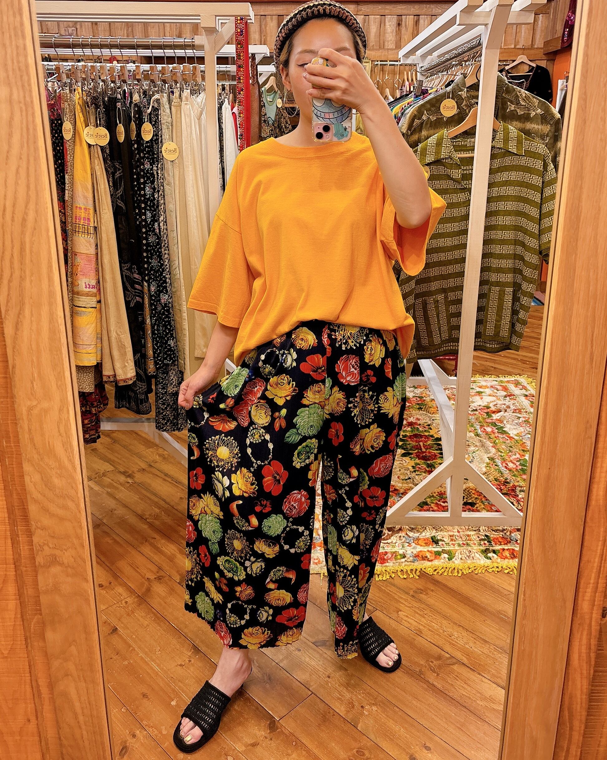 総柄 花柄 プリーツ ワイド イージーパンツ