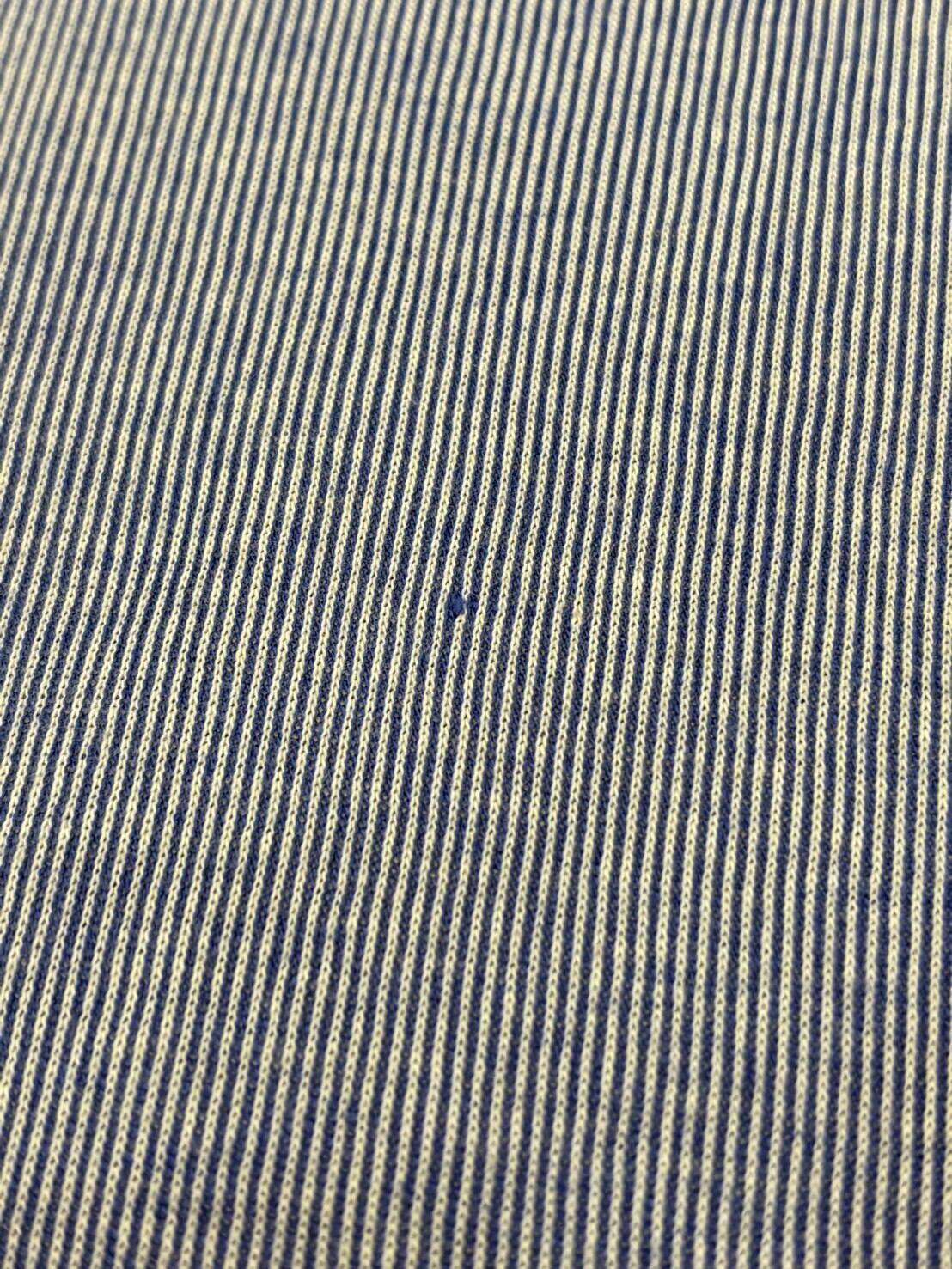 カメラの都合で模様が木の年輪のように歪んでいますが実物はストライプ柄です。画像の生地のアップの写真をご覧ください。
