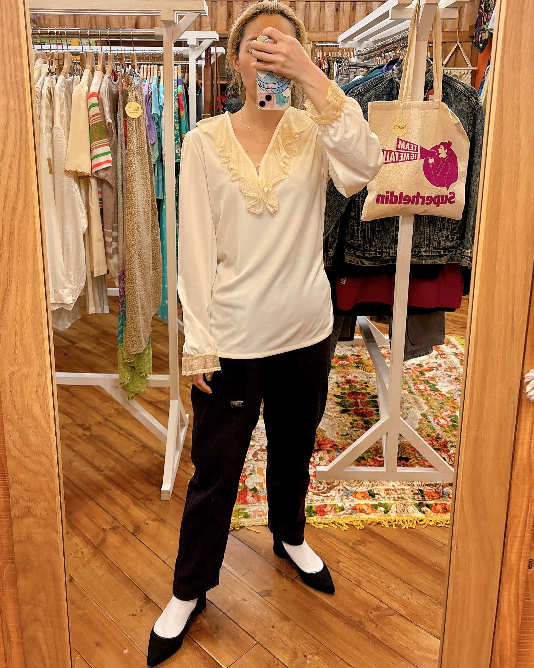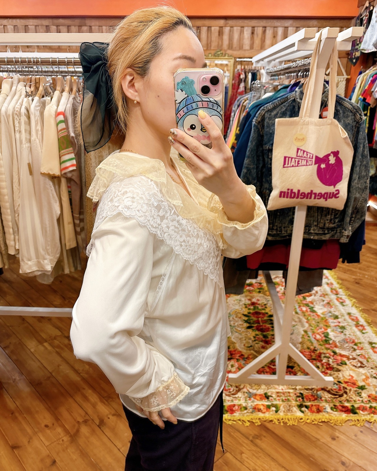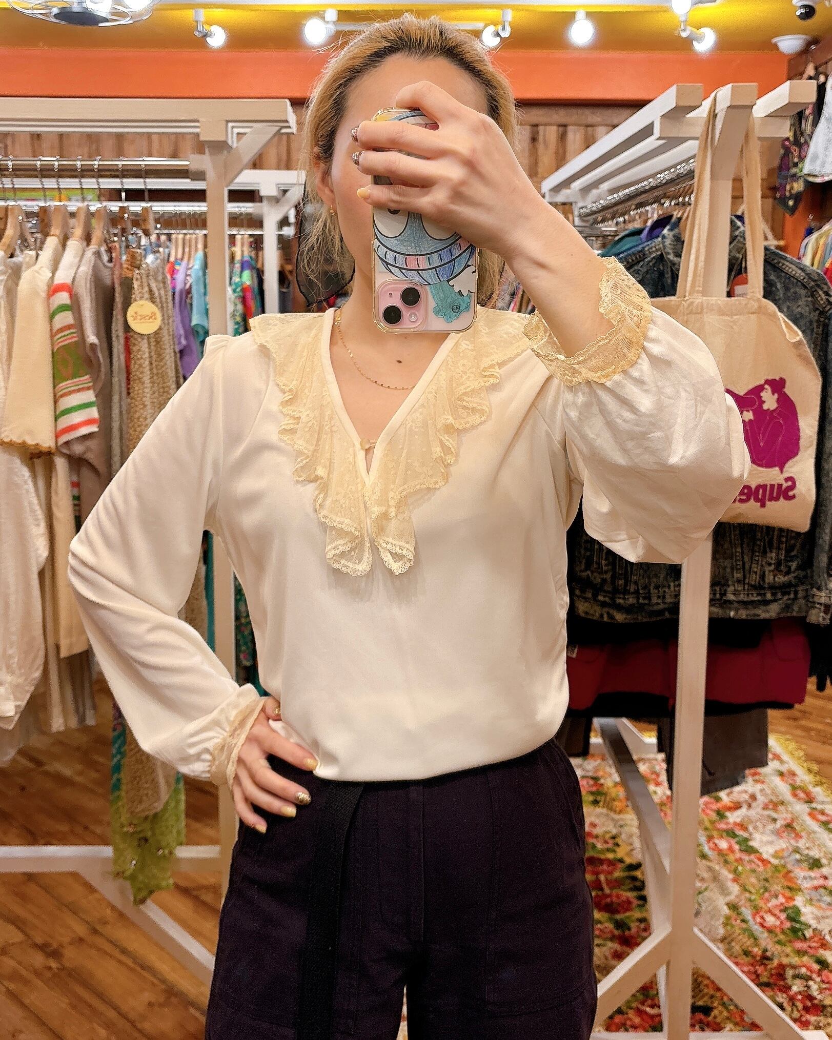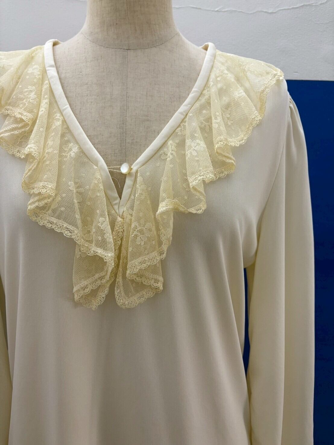 【Sears L/S ラッフルレースプルオーバーブラウストップス】
