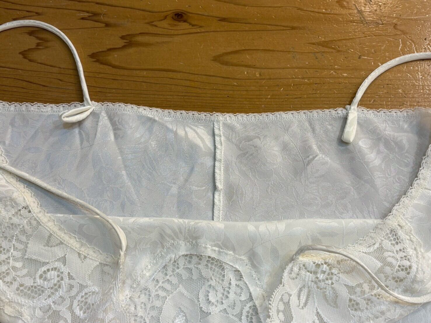 特筆するダメージ、汚れ等なく綺麗なコンディションです。大人っぽいボタニカル柄のサテンジャガードにレースの組み合わせが甘くなくてほどよいセクシーです!!お上品な印象のキャミソール。