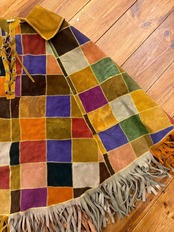 Vintage patchwork/fringe suede leather poncho レザーポンチョ