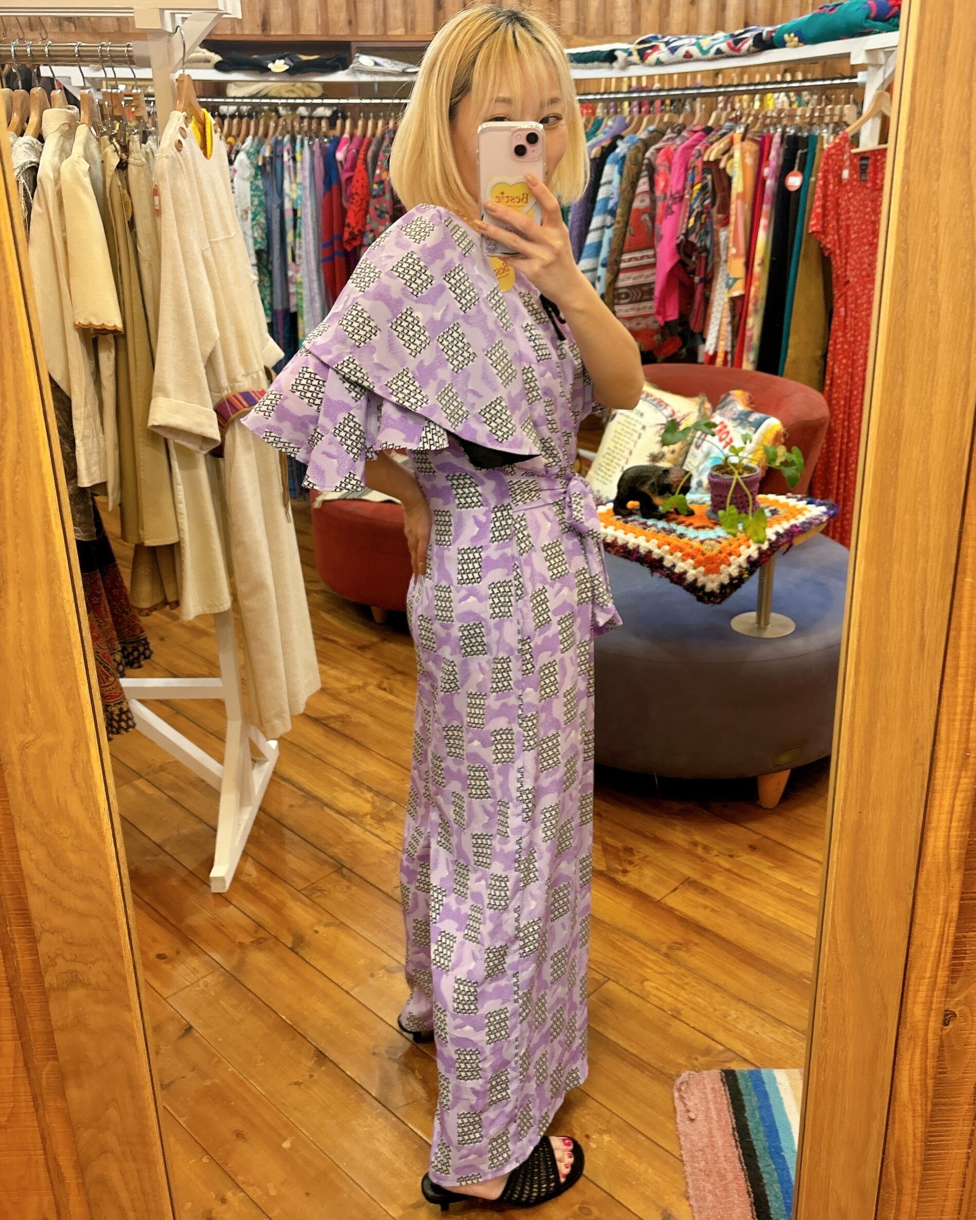 ◉肩幅—cm(肩の縫い目がなくデザイン袖のため計測不可) ◉身幅42.5cm ◉袖丈26cm ◉着丈135cm(股下60cm)