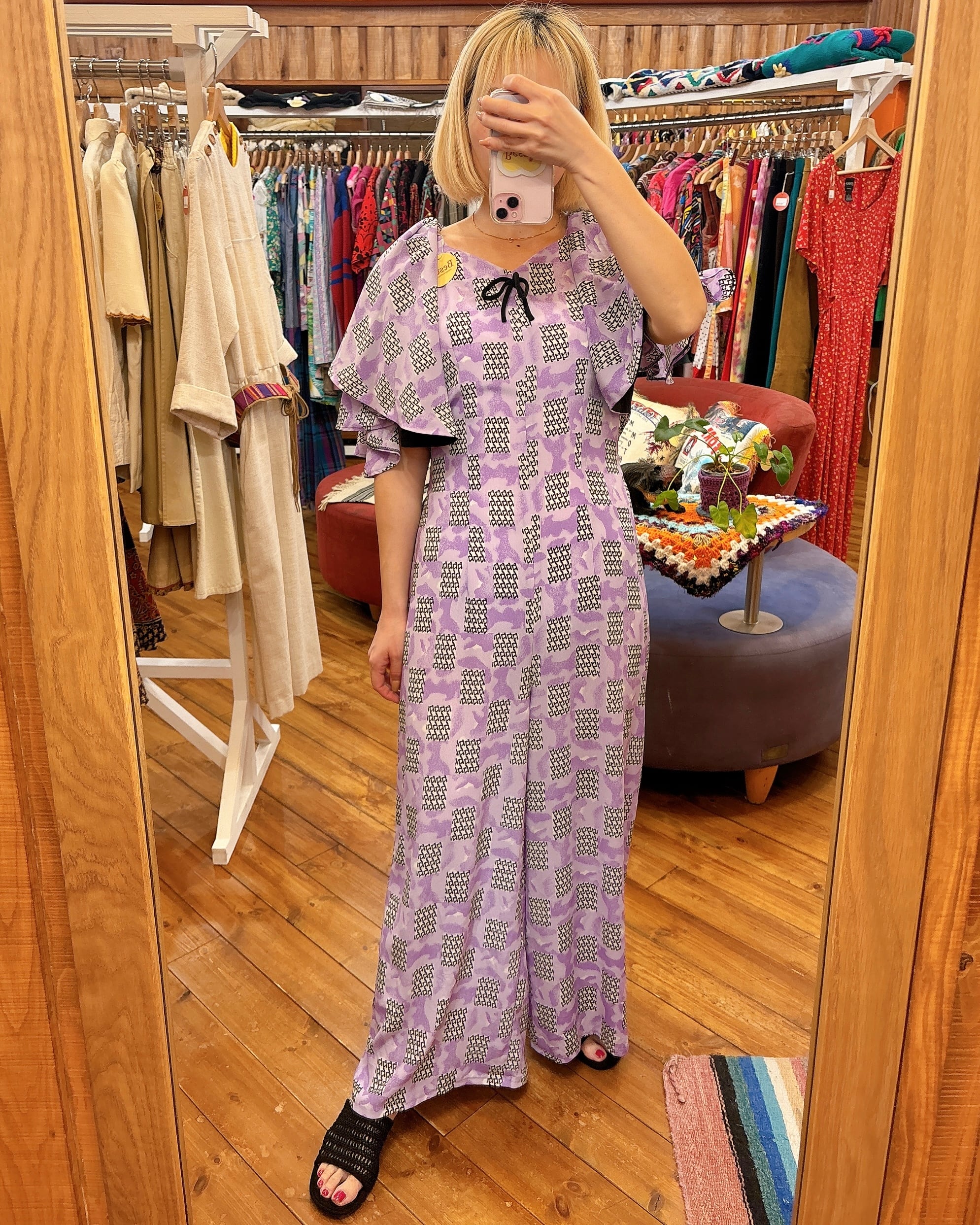 S/S Vintage backribbon/ruffle sleeve jumpsuit ジャンプスーツ