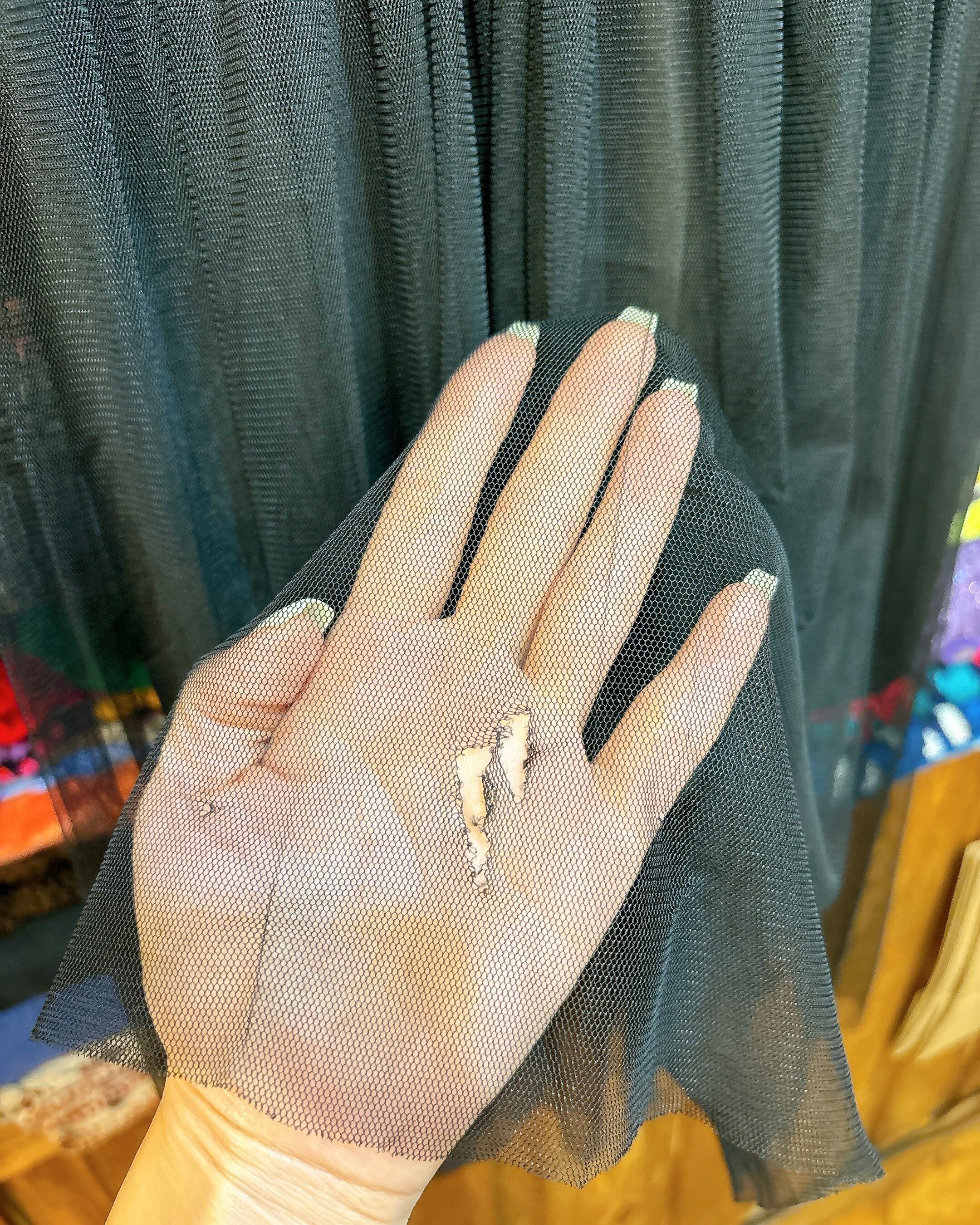 ※チュール部分、ダメージ、ツレあり。肩後ろ側小穴、裏地にダメージあり。
