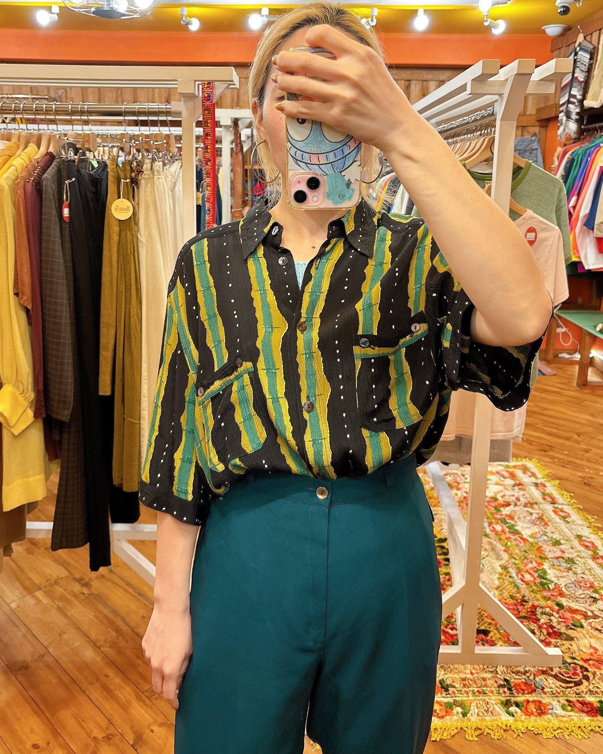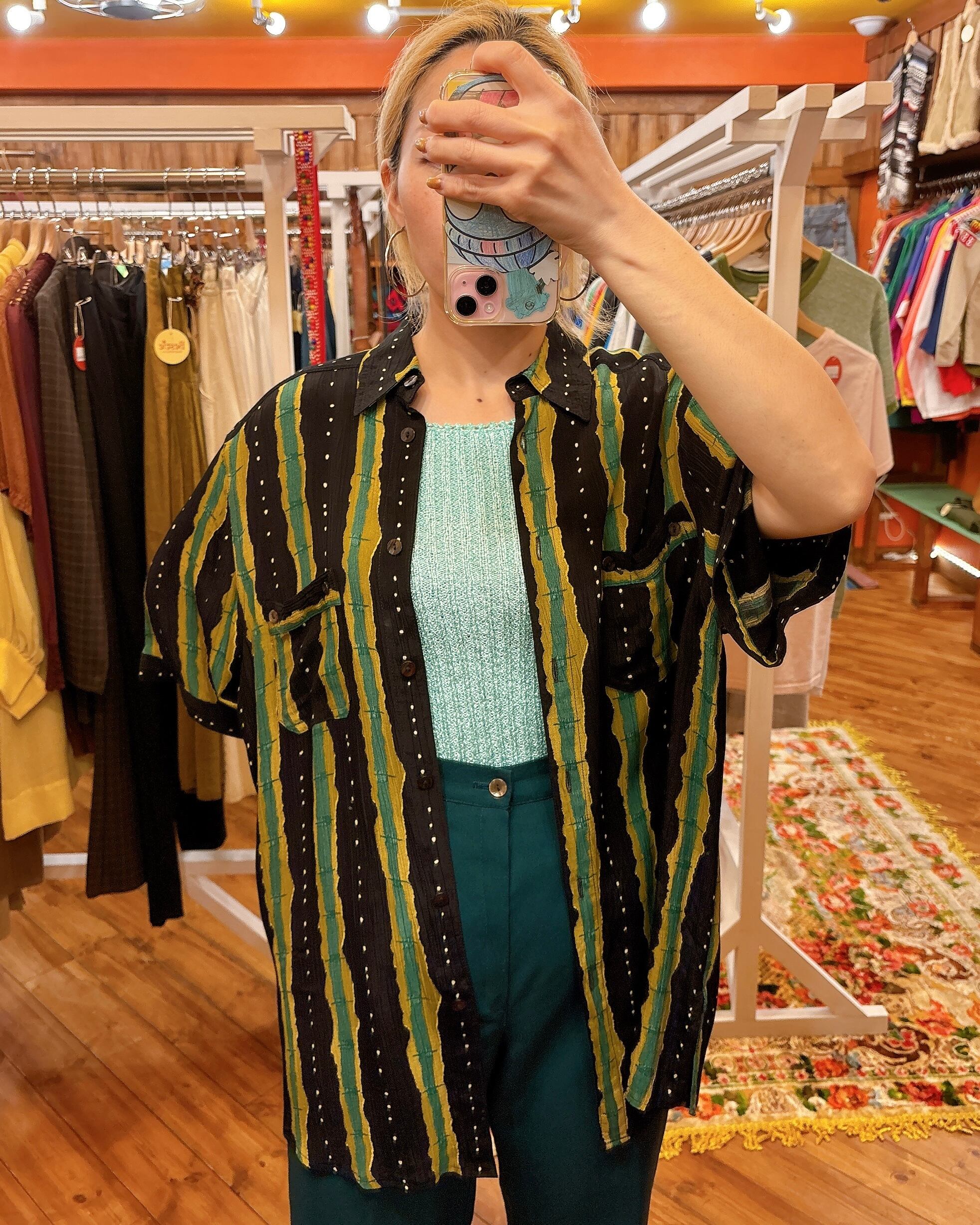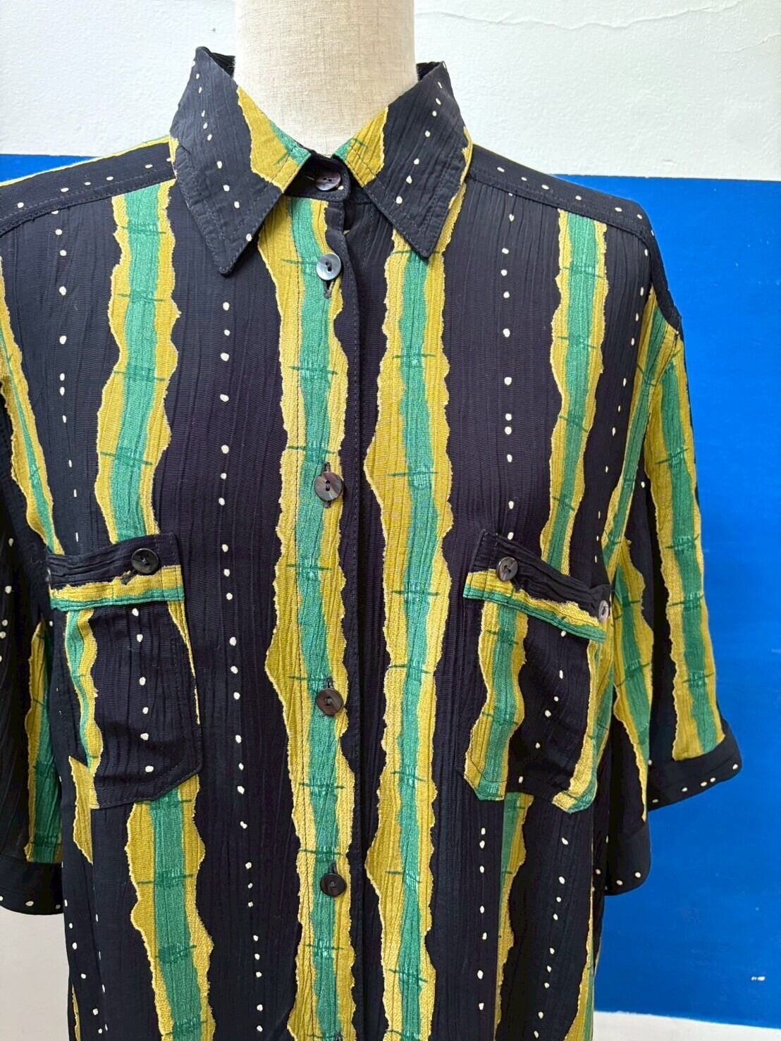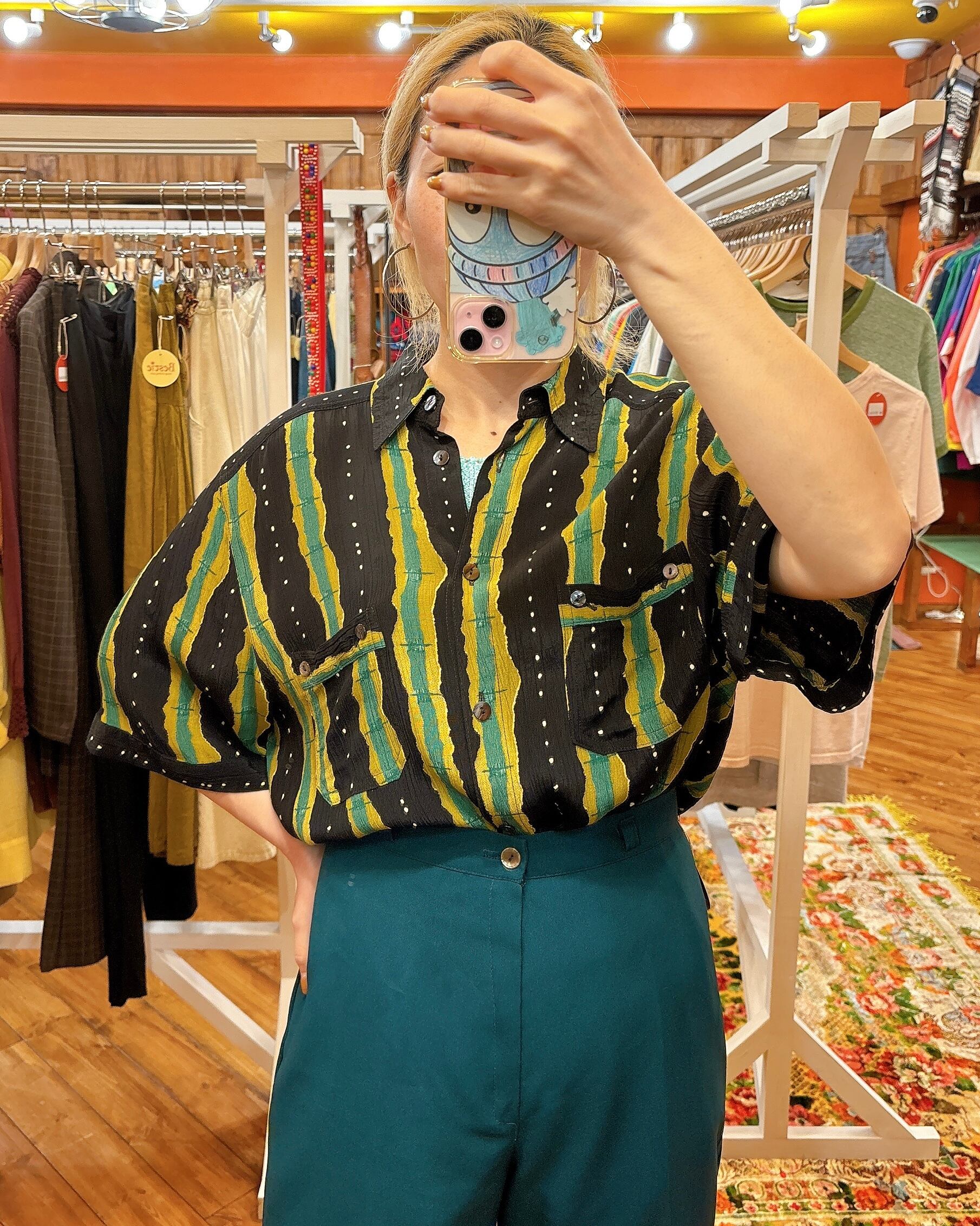 【S/S 総柄/ストライプ/ドット ビスコースレーヨンシャツ】