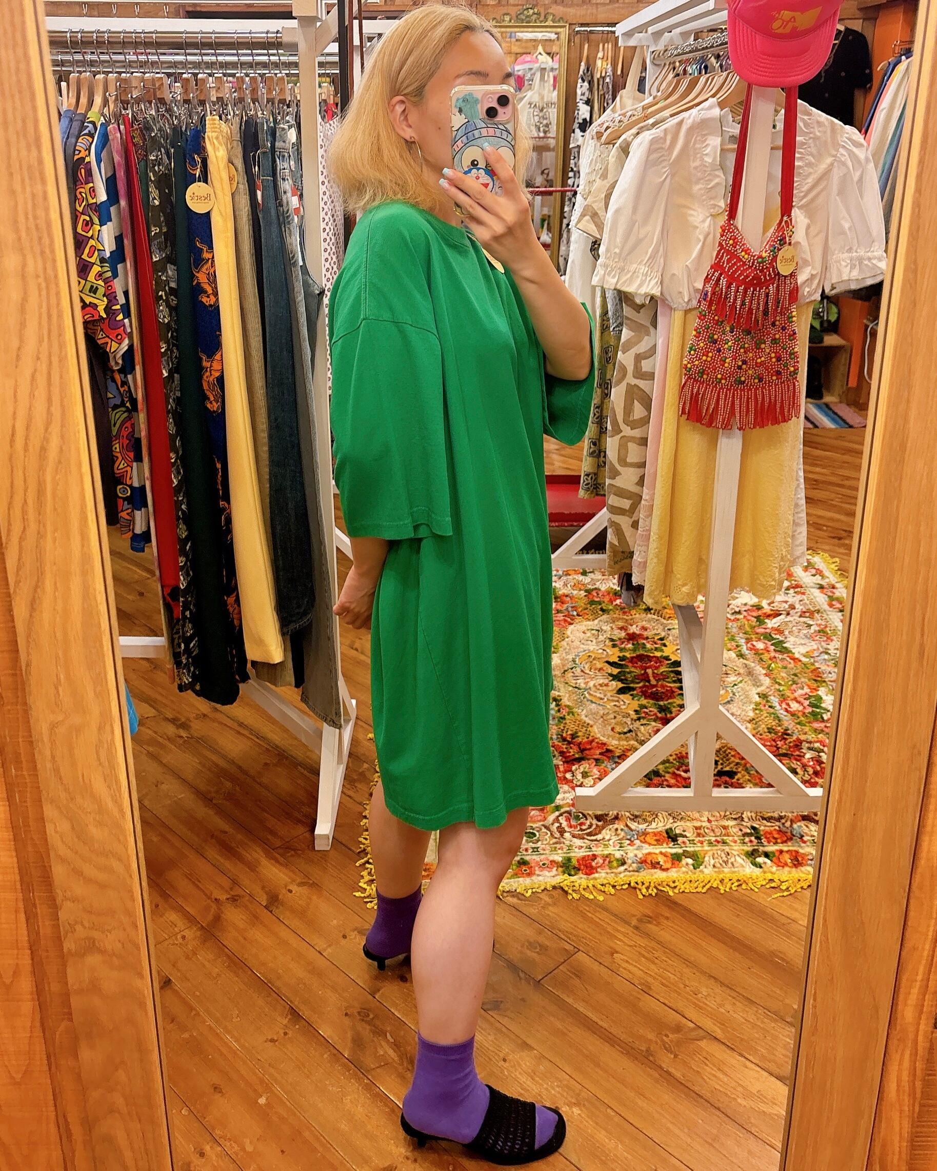 シンプルなクルーネック無地Tシャツ(緑)です。