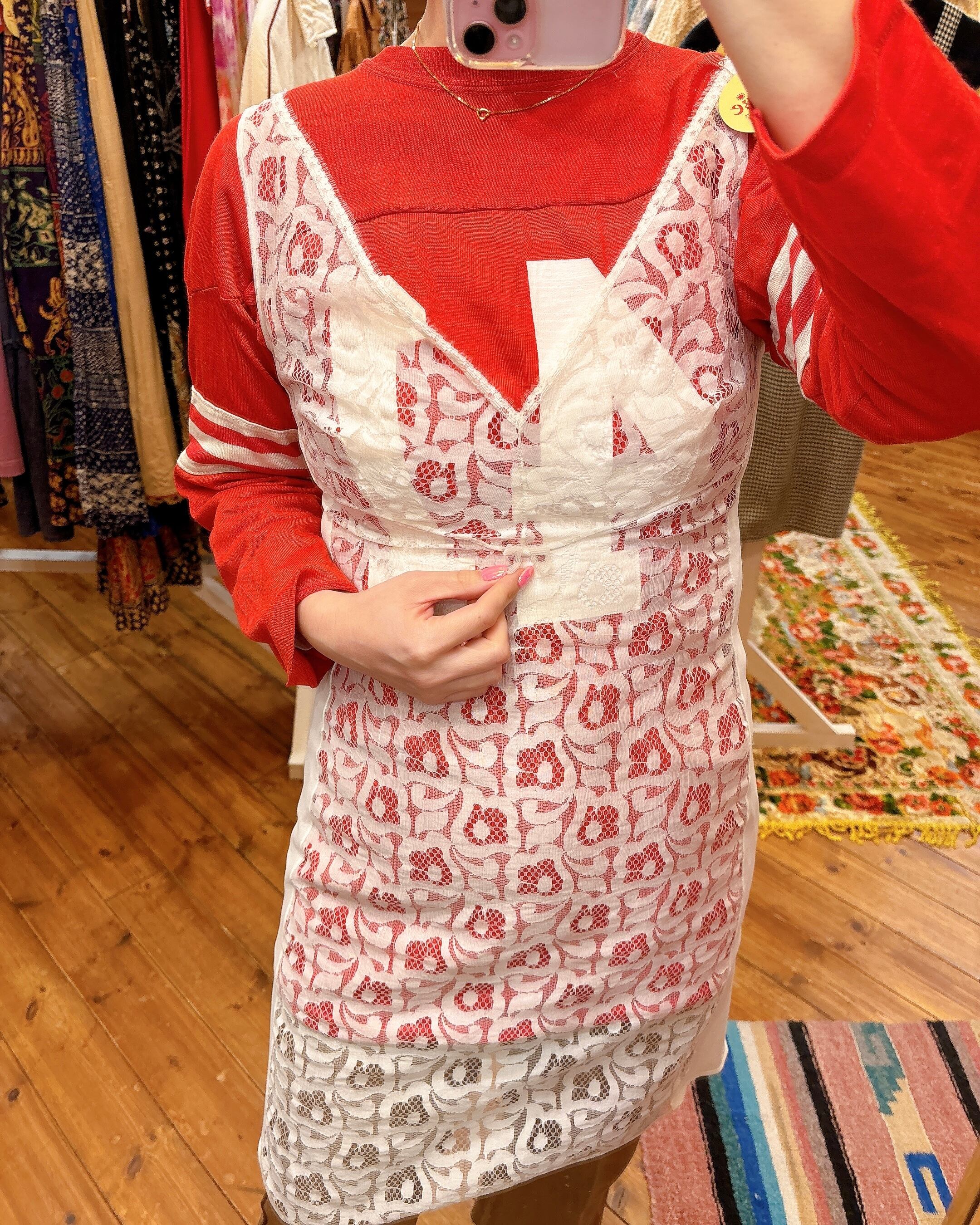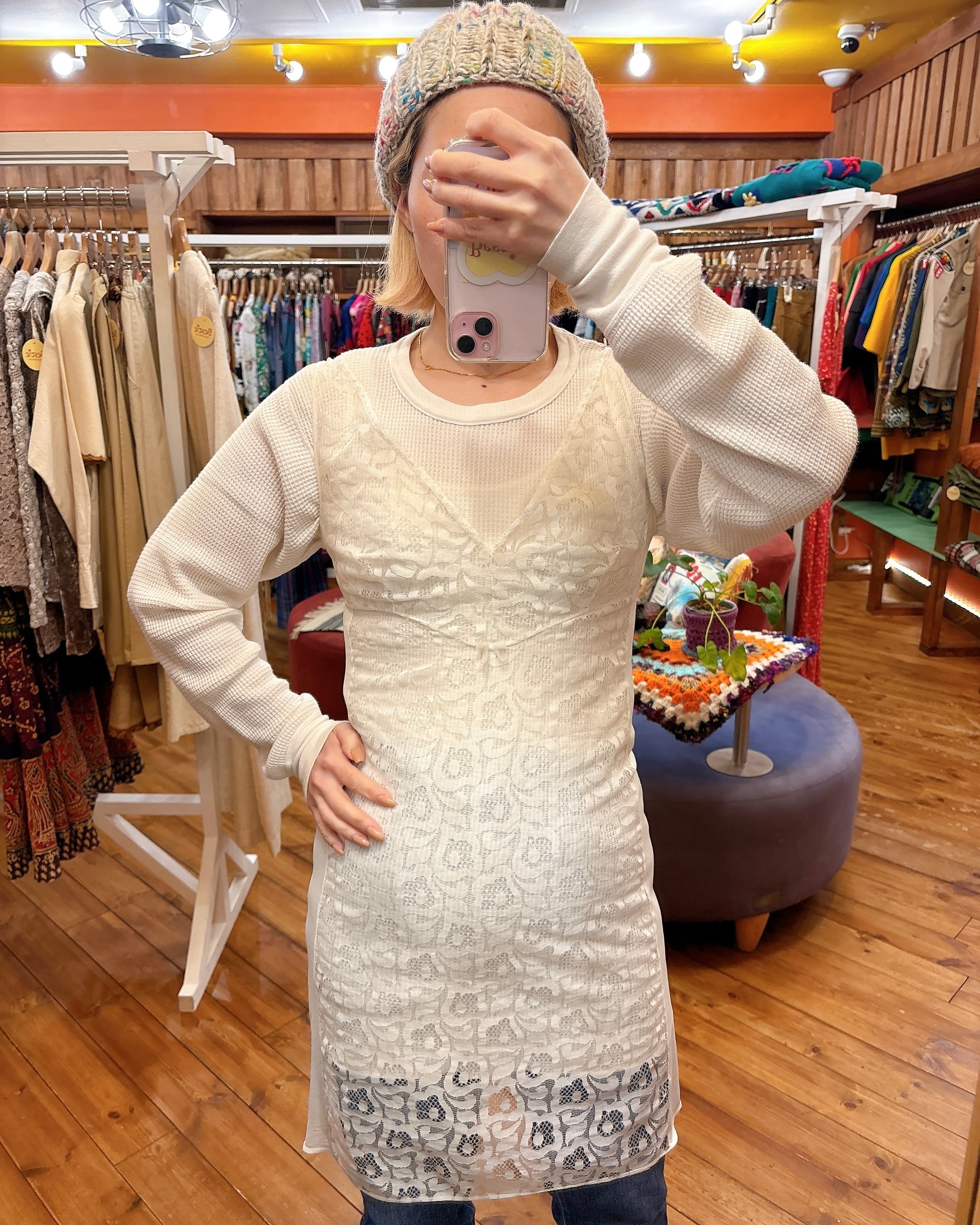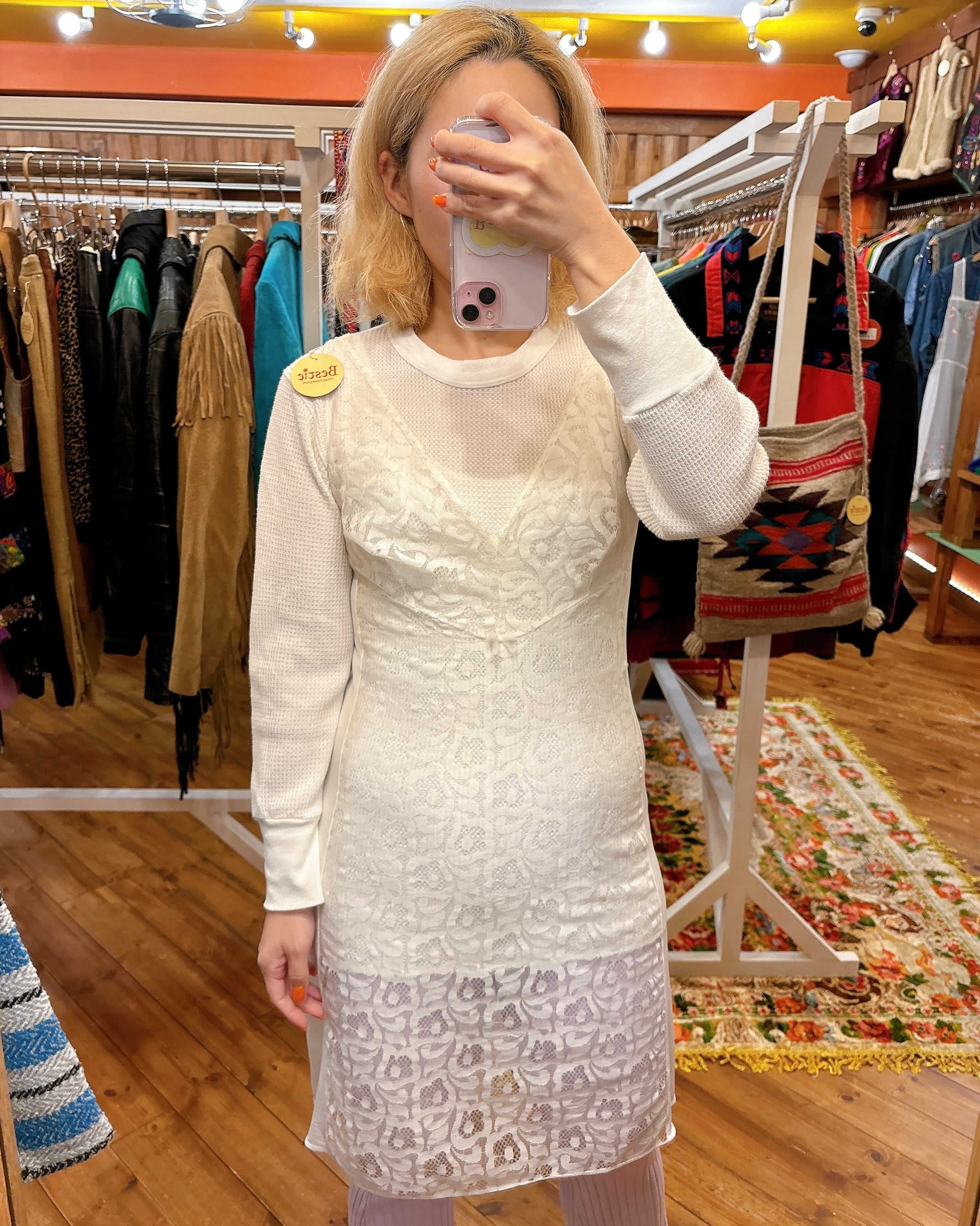 Vintage N/S ランジェリー ドレス ミニリボン/フロント総レース(白)