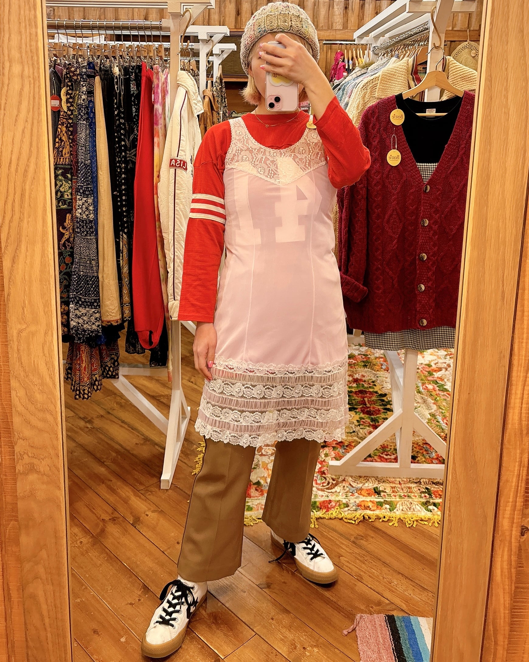 【Vintage N/S ランジェリードレス裾ティアードレース(ピンク)】