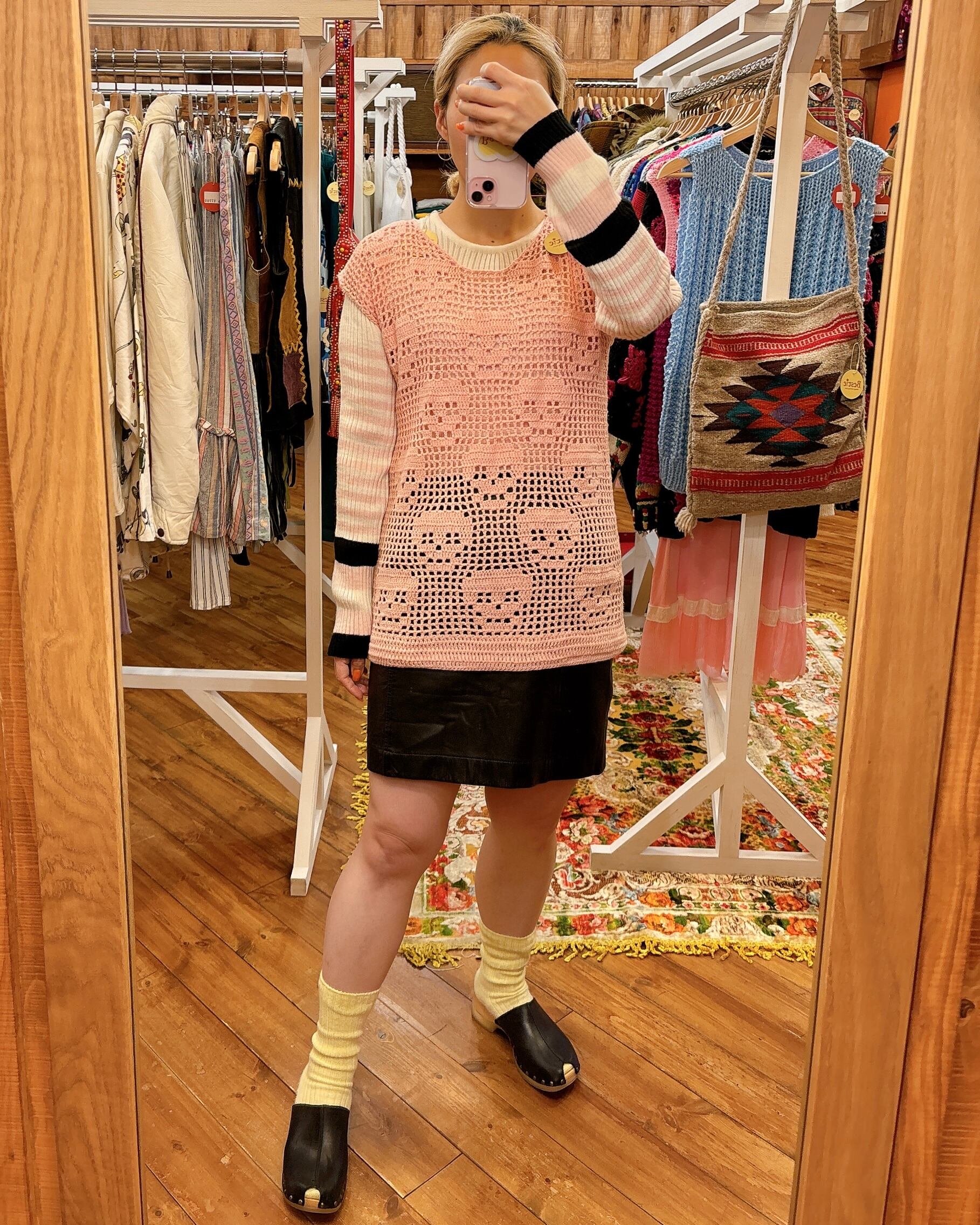 【N/S ハンドニットクロシェニットプルオーバートップススカルフェイス】