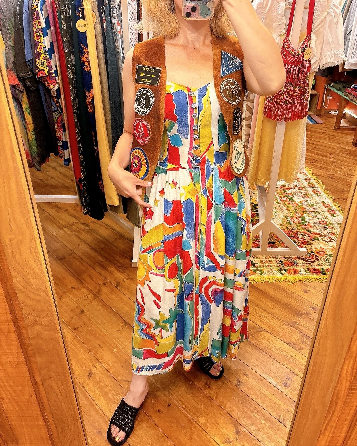 この感じはなんですかね。とても素敵でスペシャル感ある色柄と生地感です。ウエスト位置からタックが入っていてさりげない広がりのボリュームもかわいい!!非常におすすめです。とてもかわいいです◎