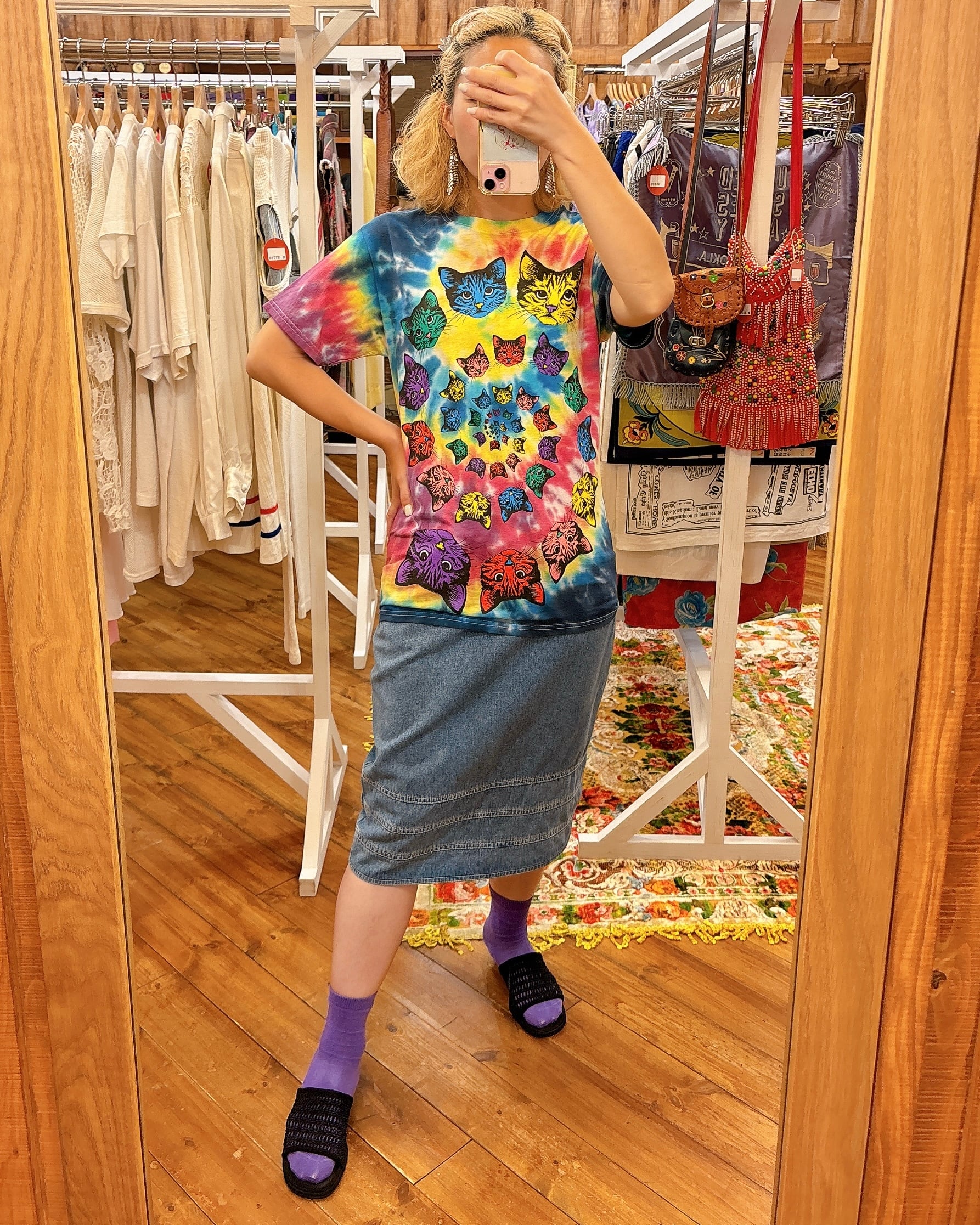 FRUIT OF THE LOOM S/S タイダイ/ねこ プリント Tシャツ