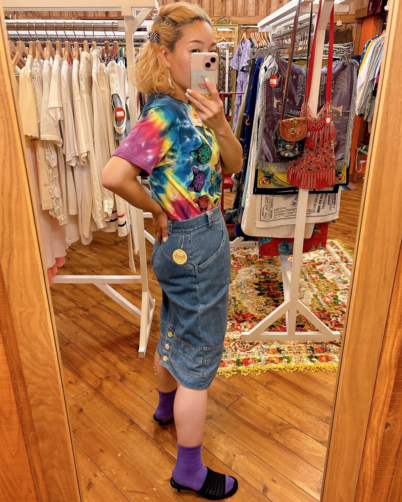 【FRUITOFTHELOOMS/S タイダイ/ねこプリントTシャツ】