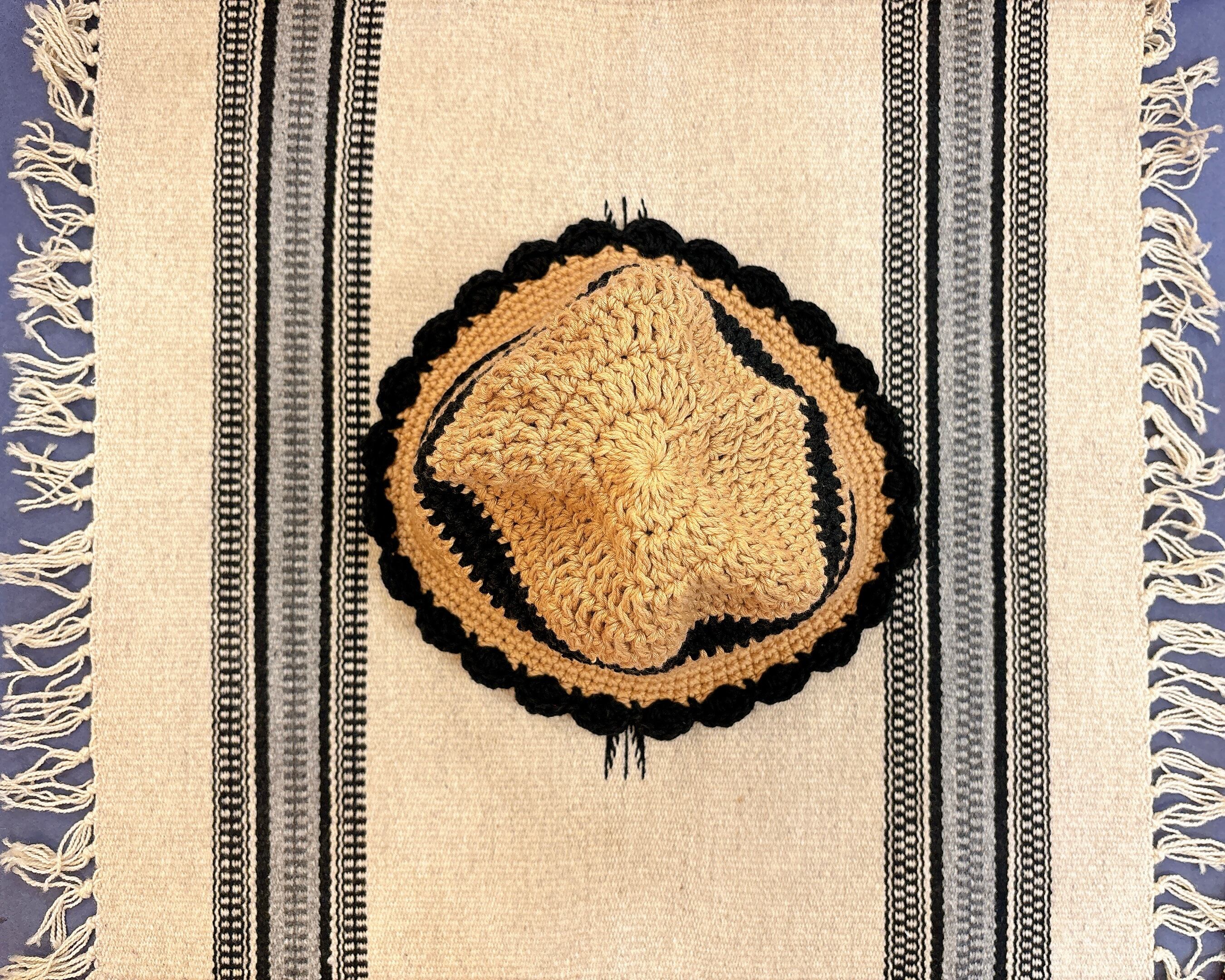 日本製の良質で滑らかなコットン100%毛糸を使用して作りました。しっかり太さのある毛糸で編んでいますので、心地よい重みがあり肌触りもやさしいです。