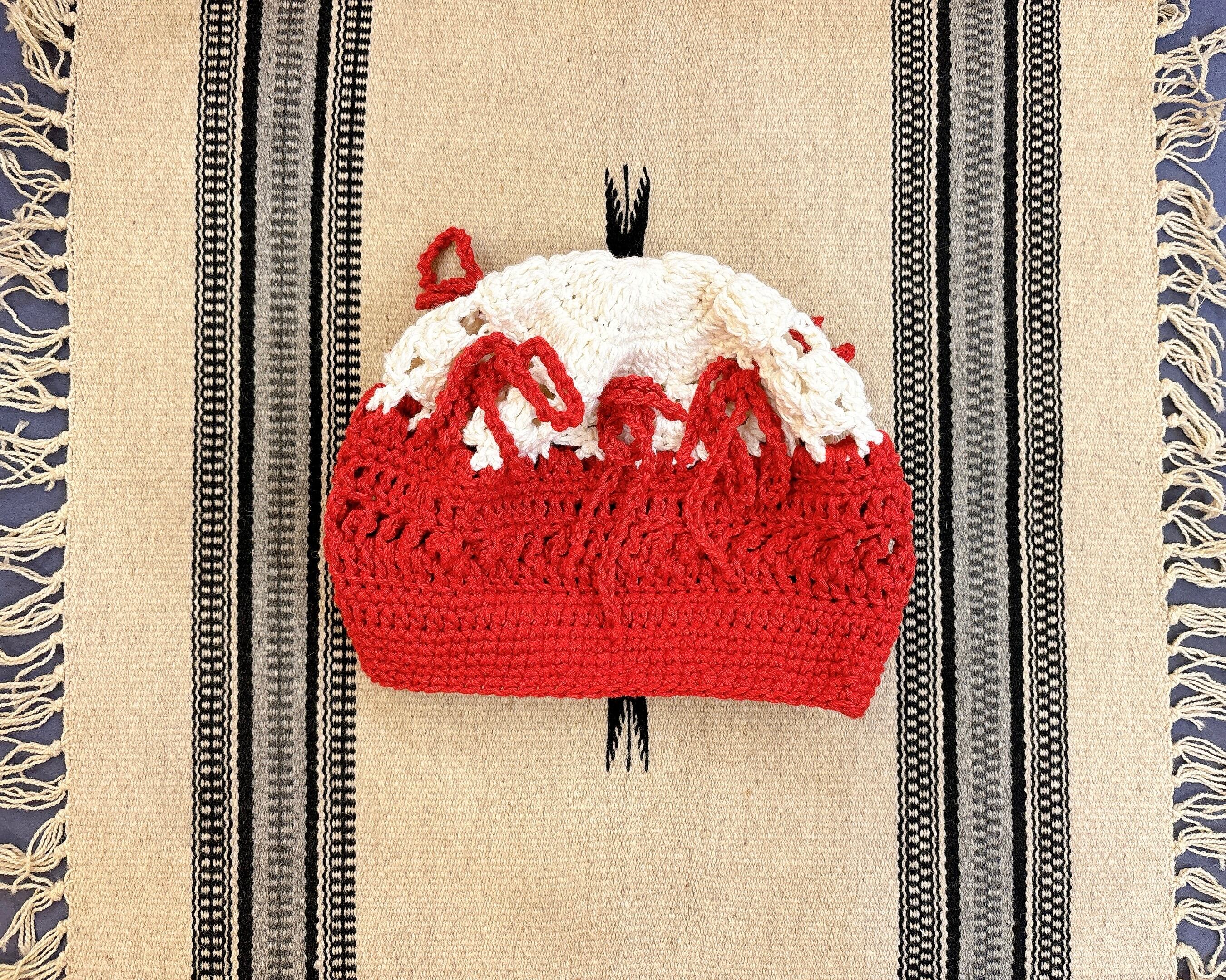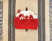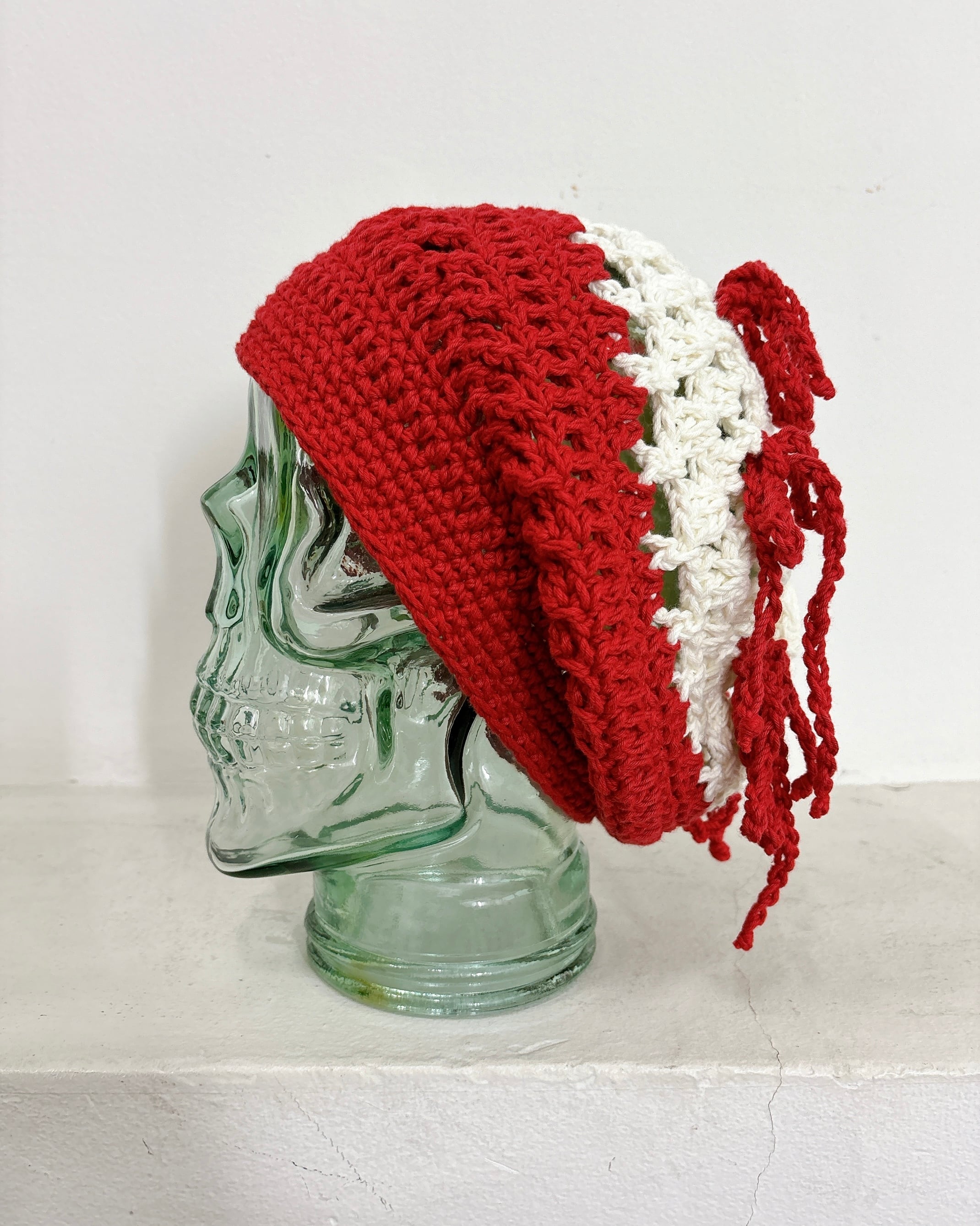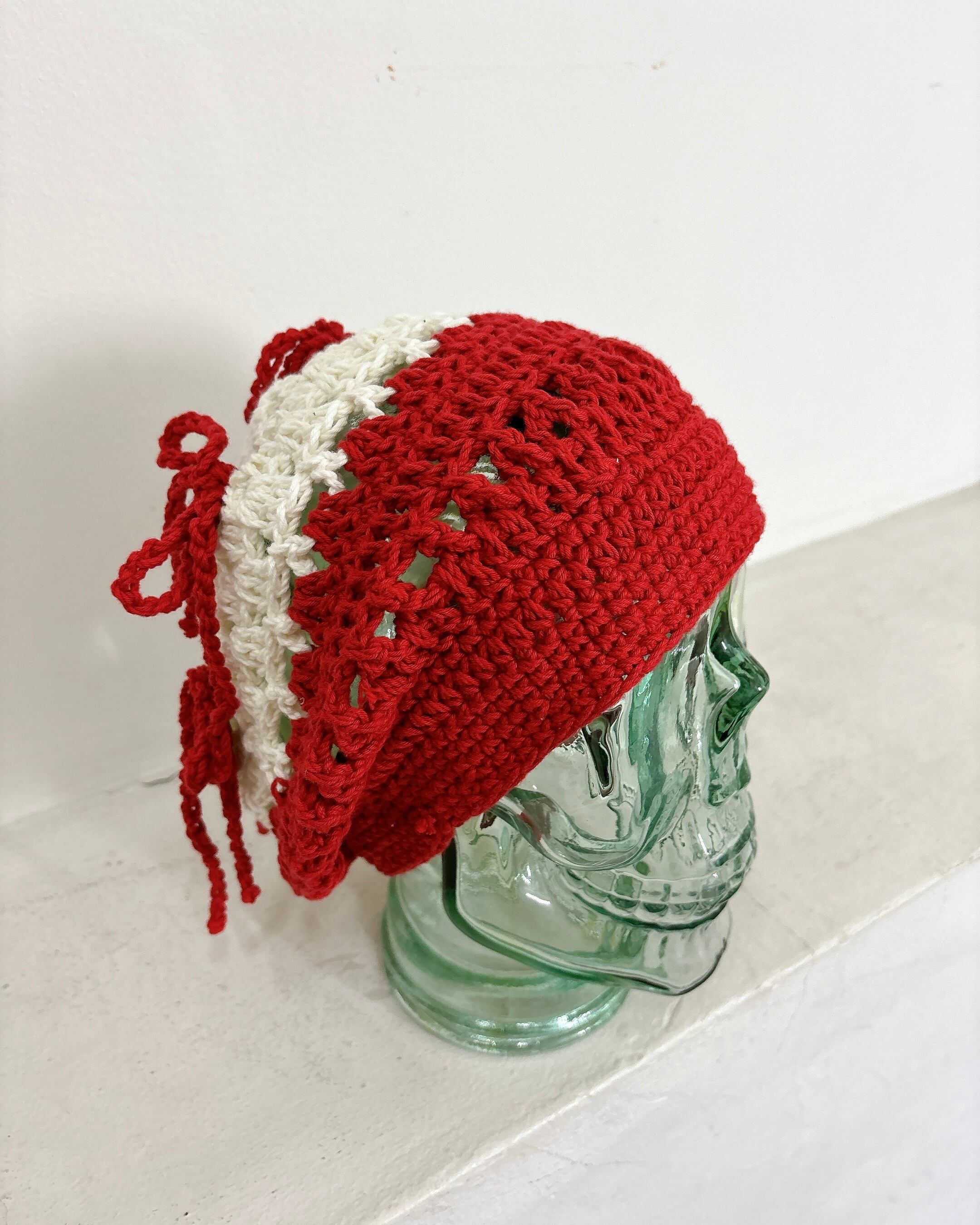 【【NEW】Curly hair/COTTON 100 Ribbon×Ribbon Tam Knit Cap(RED/WT)】