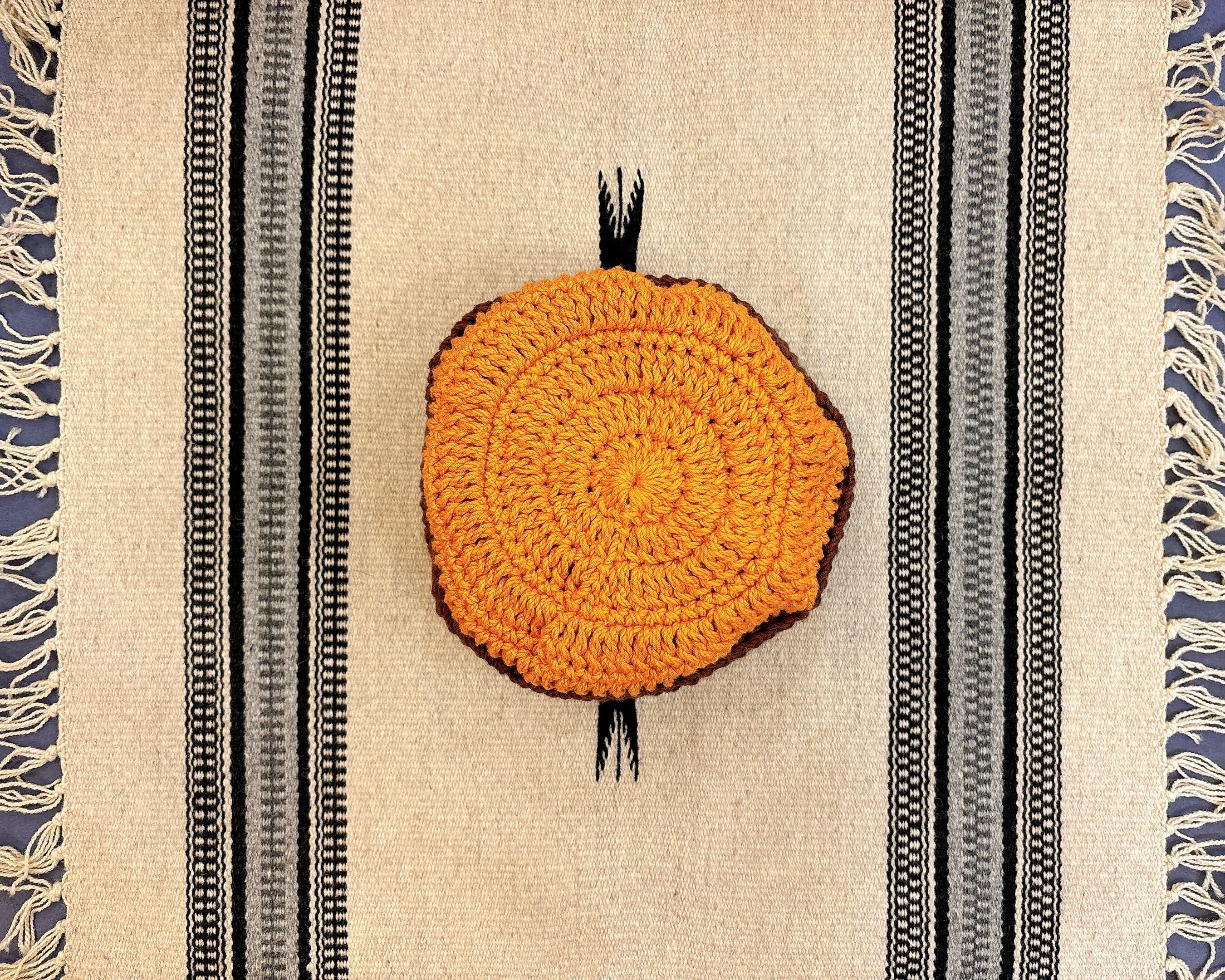 日本製の良質で滑らかなコットン100%毛糸を使用して作りました。しっかり太さのある毛糸で編んでいますので、心地よい重みがあり肌触りもやさしいです。