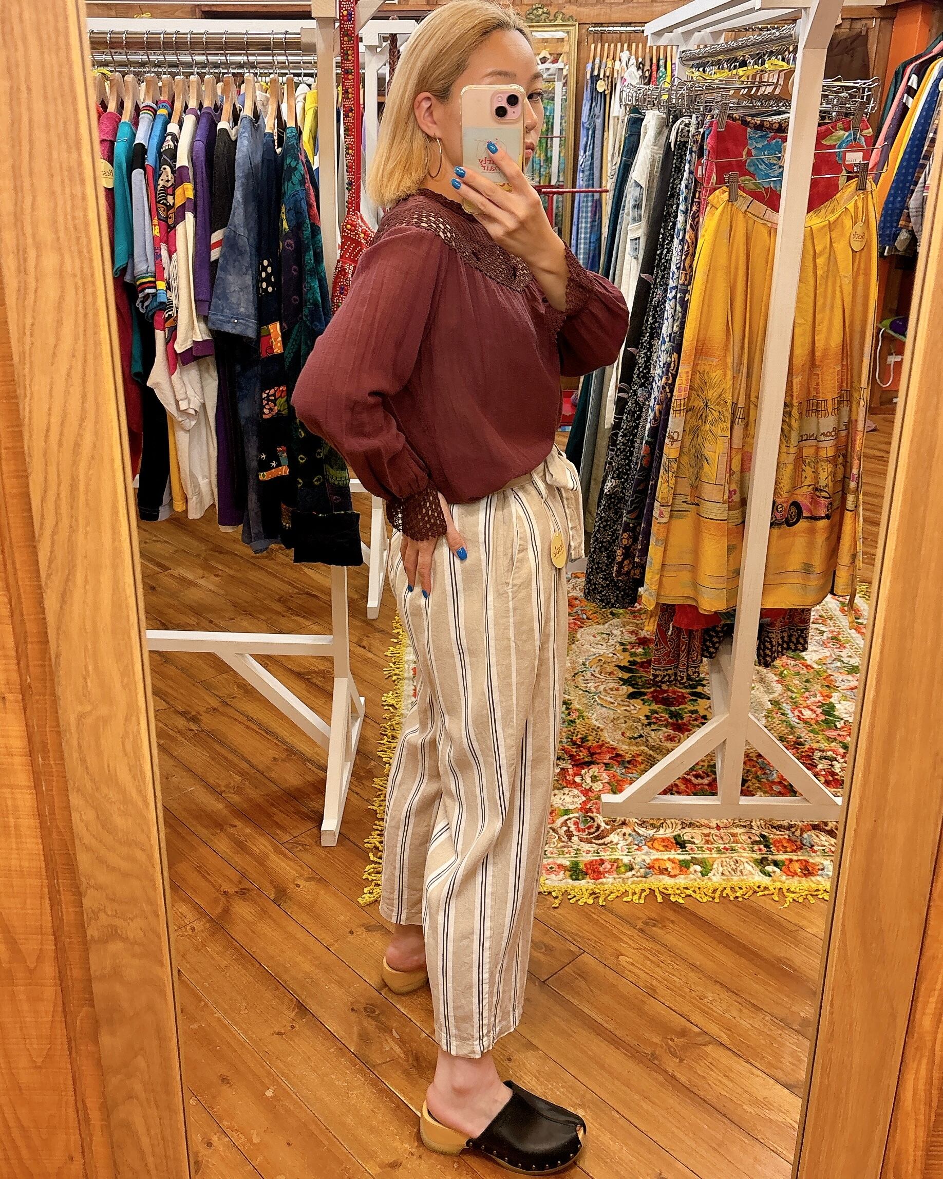 カラーもナチュラルなベージュなので秋冬のお洋服にも馴染みそうです!通年使えそうなパンツです。