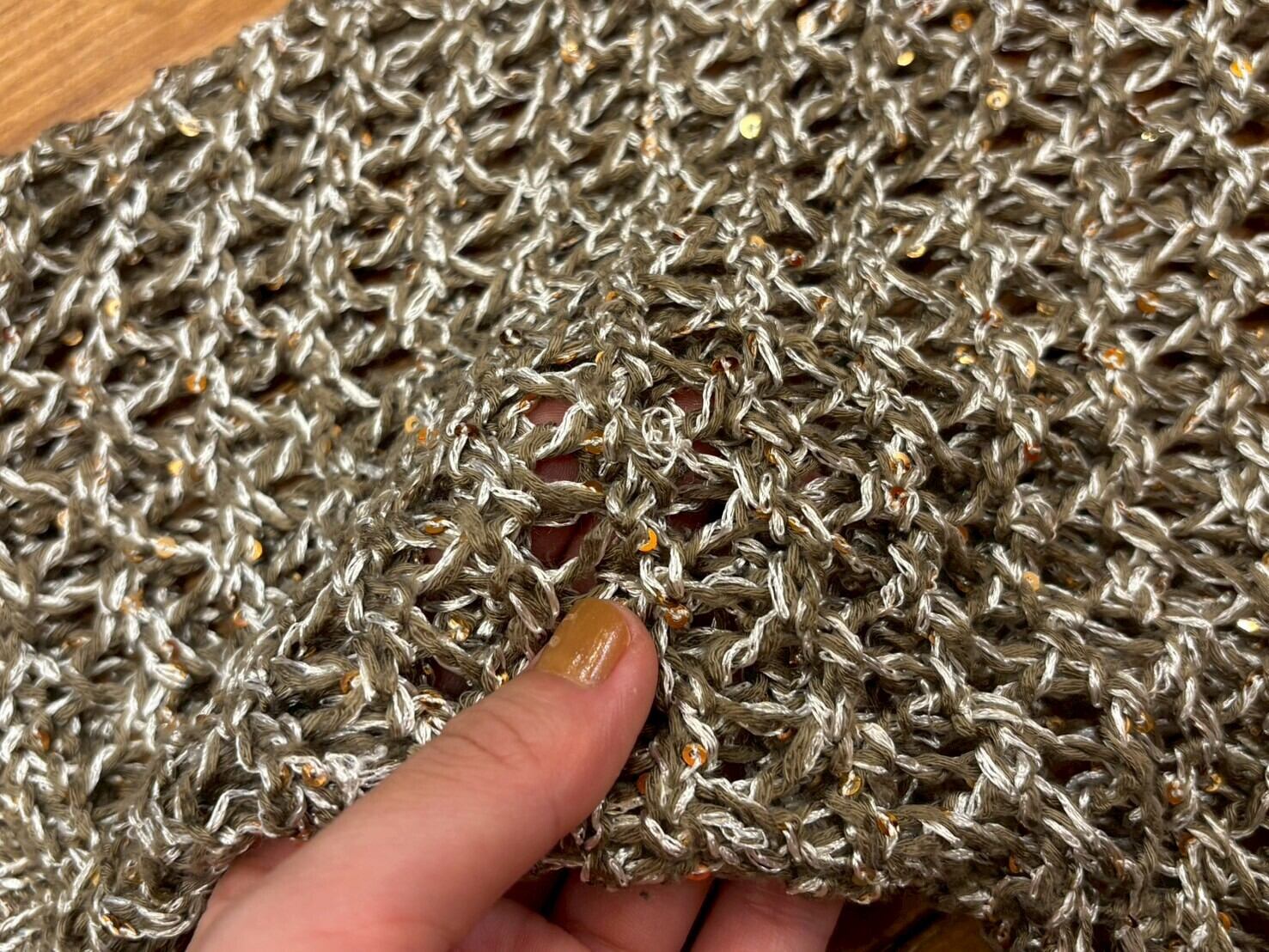 ・写真に撮るとスパンコールのキラキラがなかなか写らずわかりにくいですが、ゴールドっぽいカラーのスパンコールです。