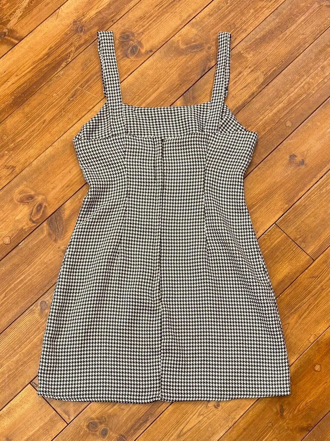 C&A N/S 千鳥格子/総柄 サスペンダーデザイン ミニワンピース