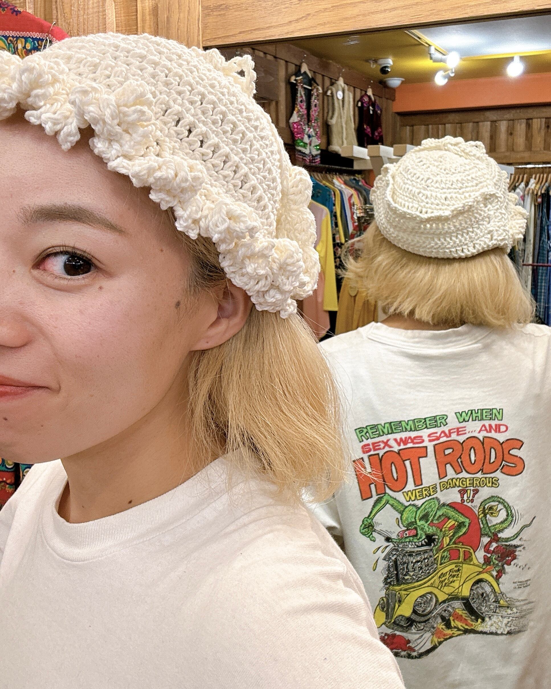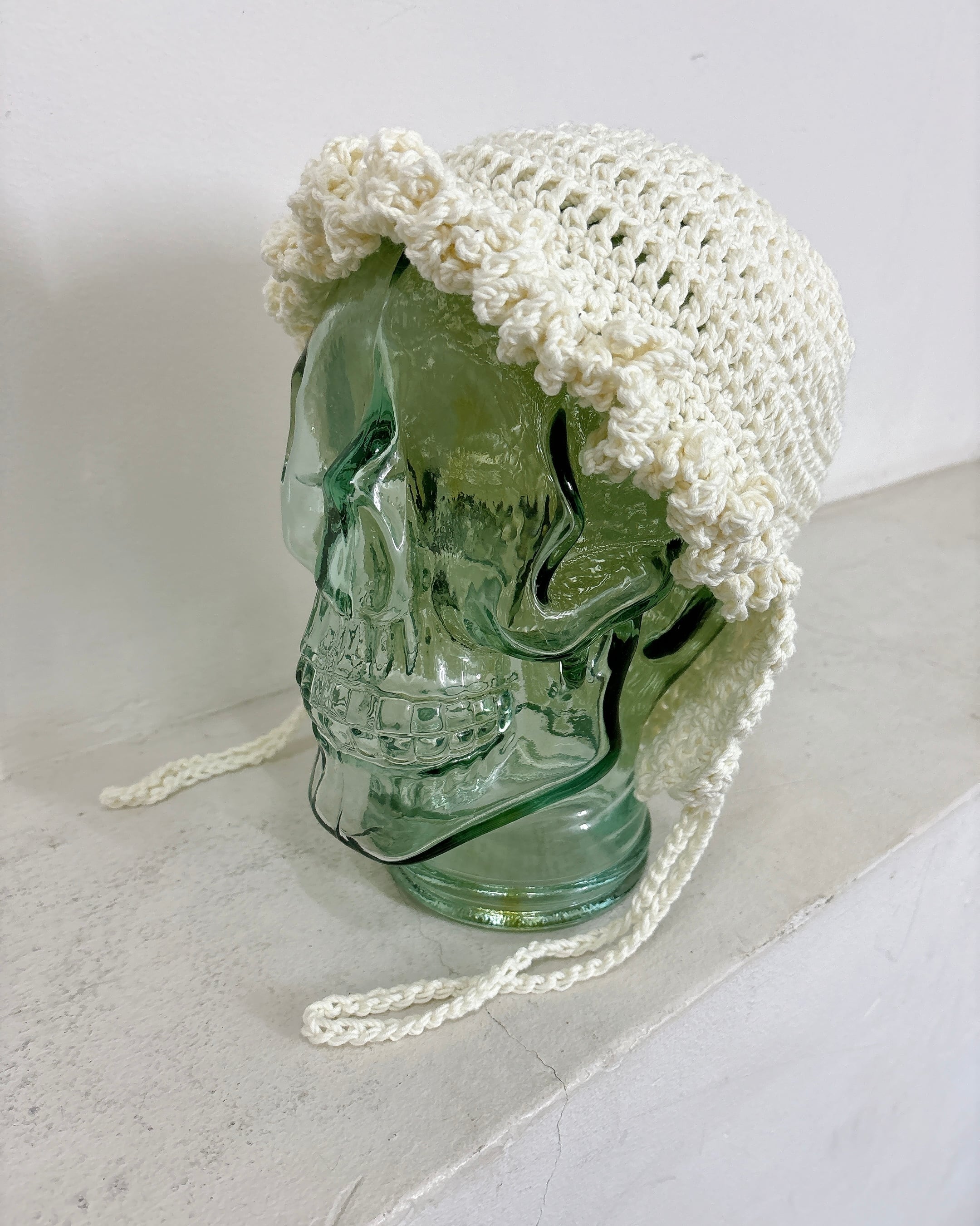 【NEW】Curly hair / COTTON 100 Crochet hood knit cap(白)