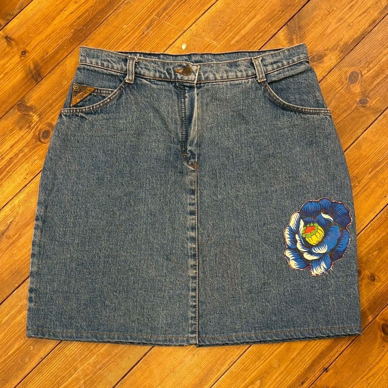 Vintage denim skirt お花パッチ カスタム デニム スカート