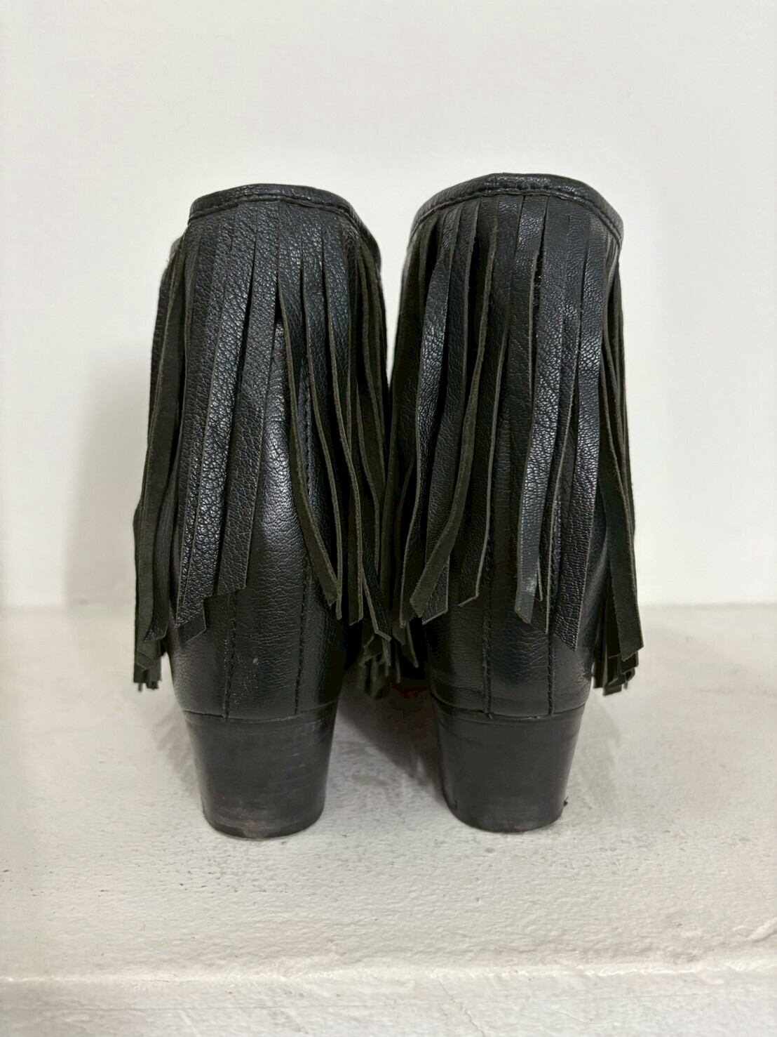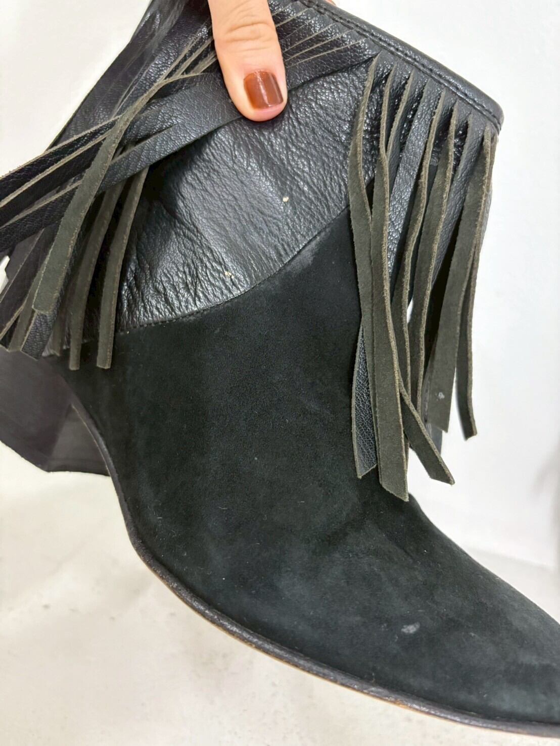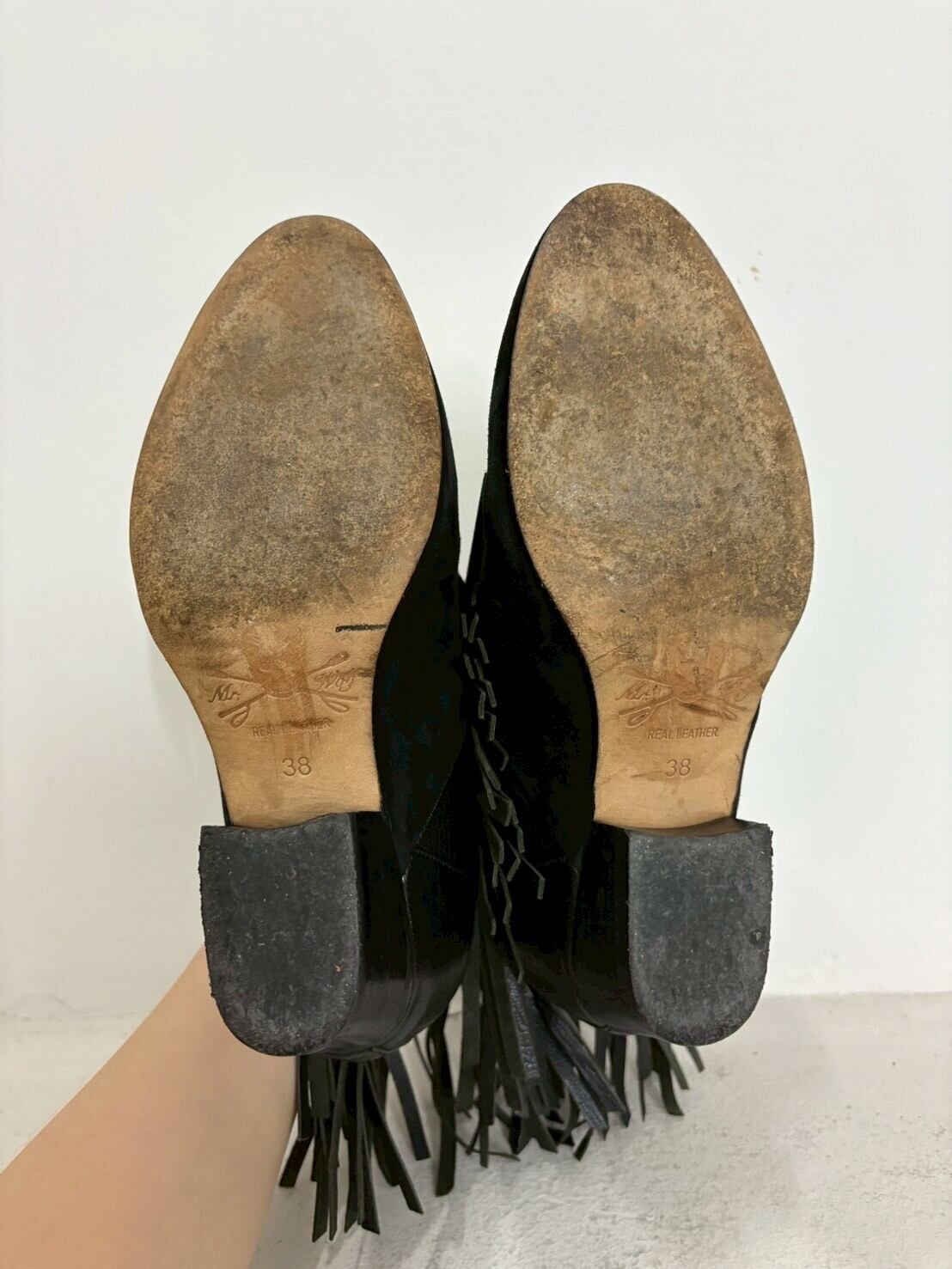 Mr.wolf レザー フリンジ インヒール ショート ブーツ