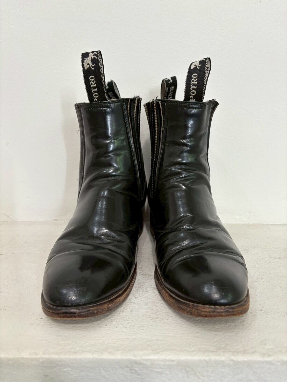 光沢のある磨き加工がかかったレザーのサイドゴアブーツです。