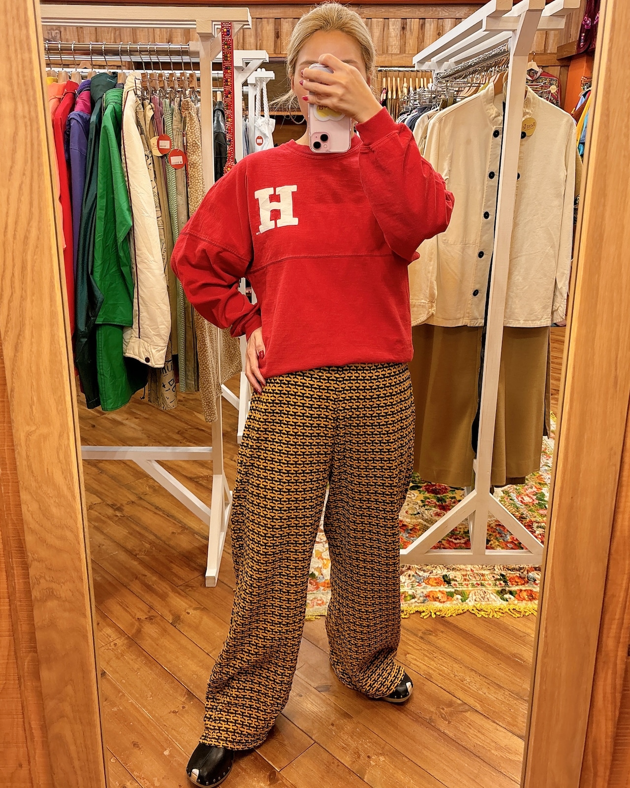 立体感あるジャガードニット生地でさらっとしたさわり心地が気持ちいい総柄のイージーパンツ!