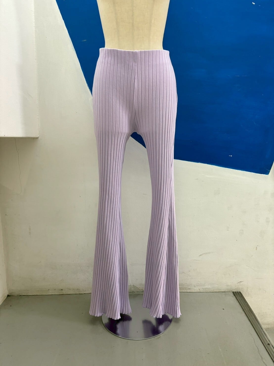 淡いパープルカラーがかわいいリブニットのイージーパンツです。比較的薄手で柔らかくて肌触りが良い生地です。