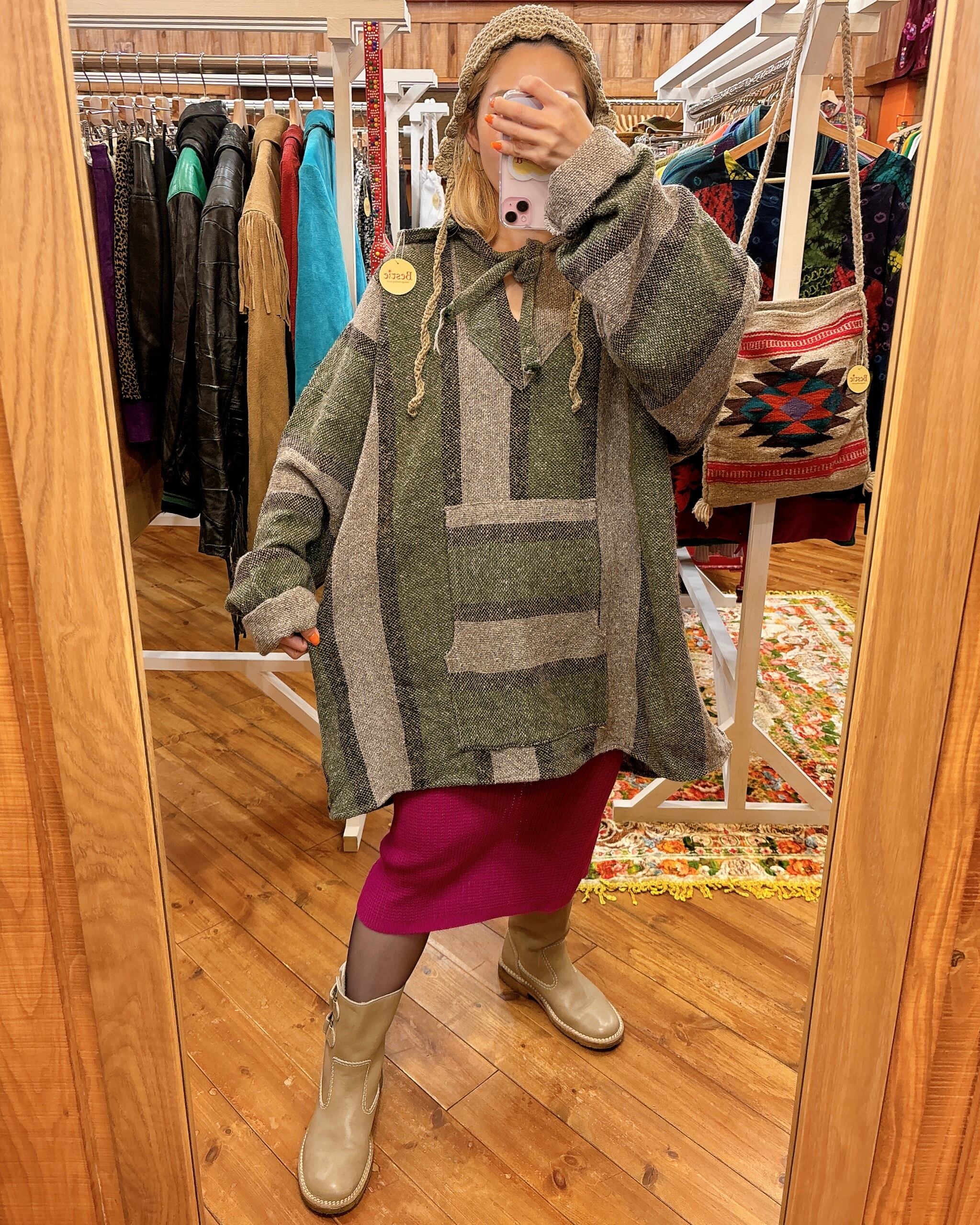 かなり大きめサイズのメキシカンパーカーです!女性の方でしたらパーカーワンピの感覚で着用できそう!カラーも素敵です。