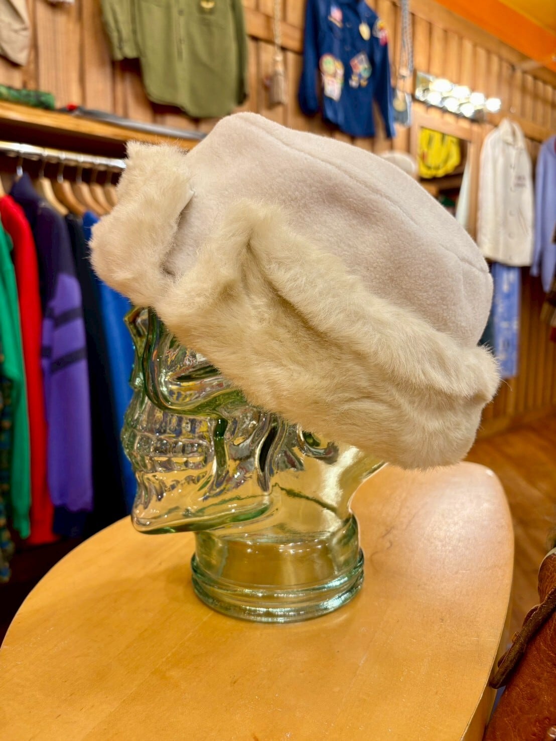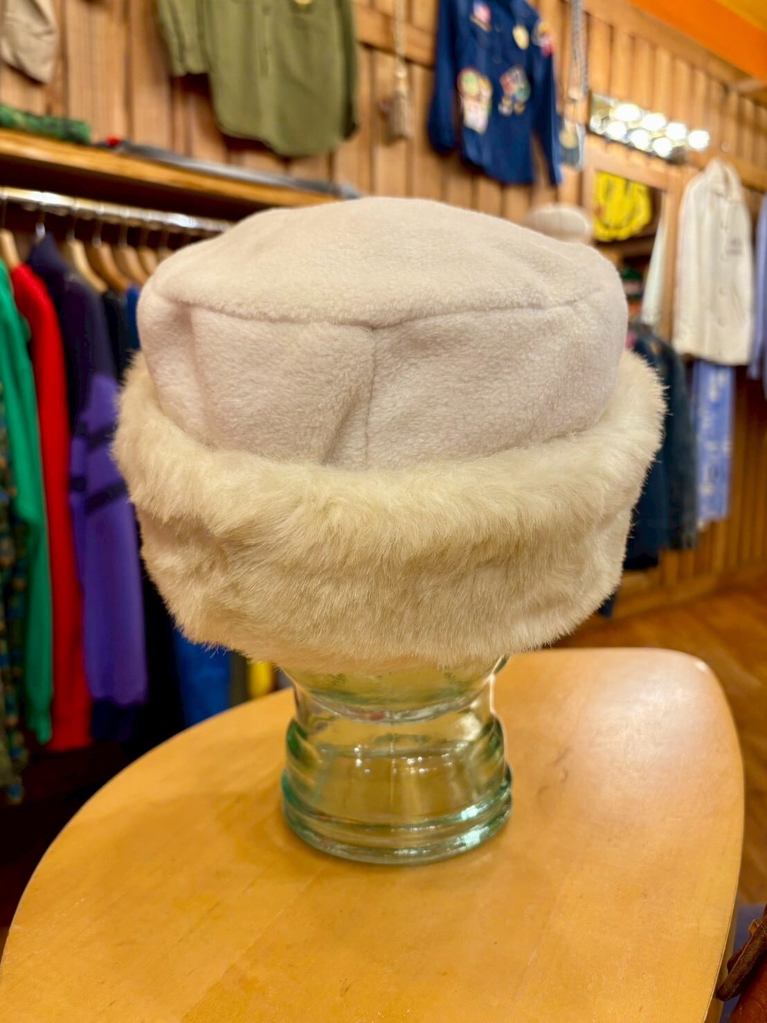 エコファーとフリースの素材コンビがとてもかわいらしい印象の帽子です。