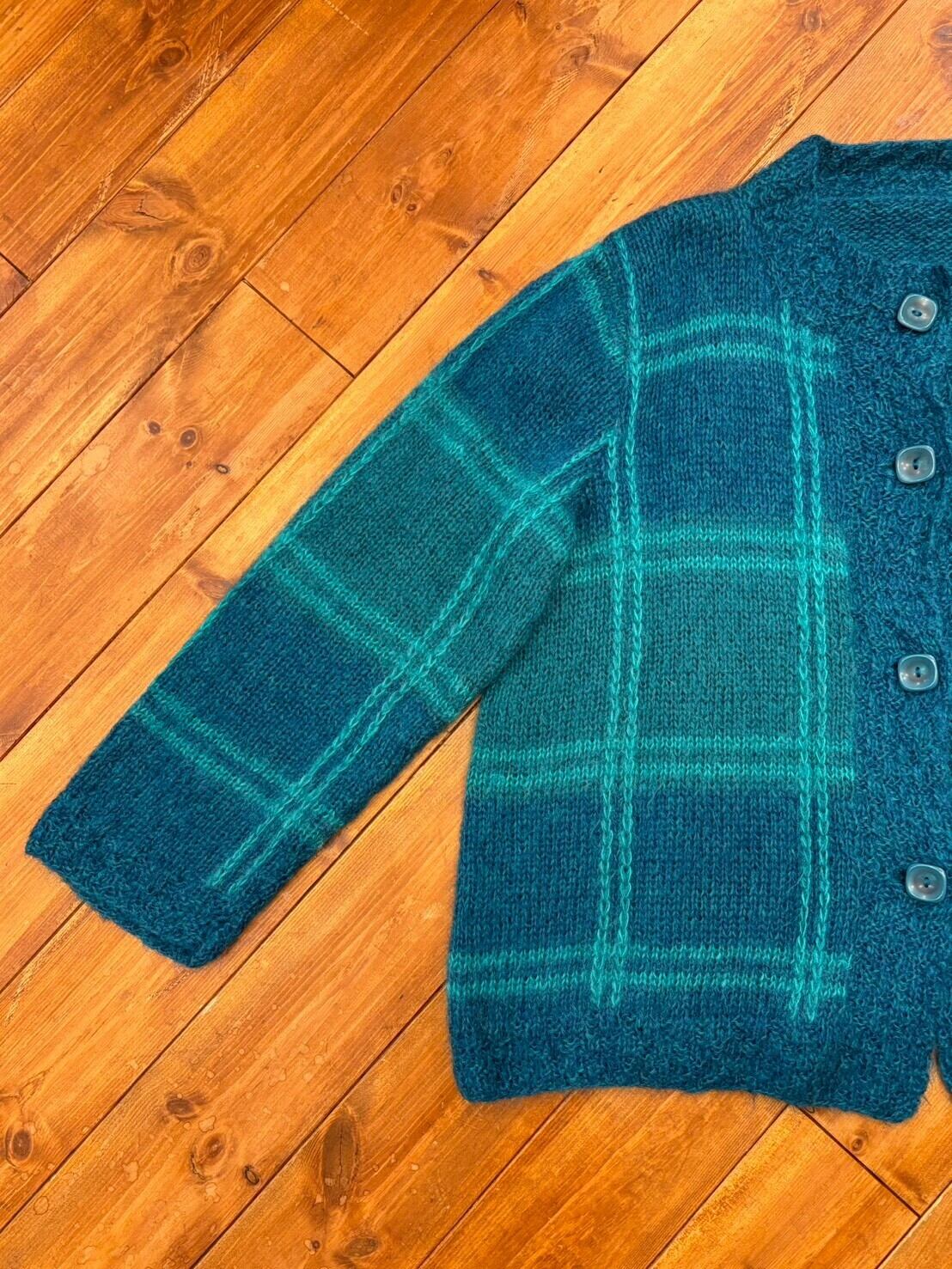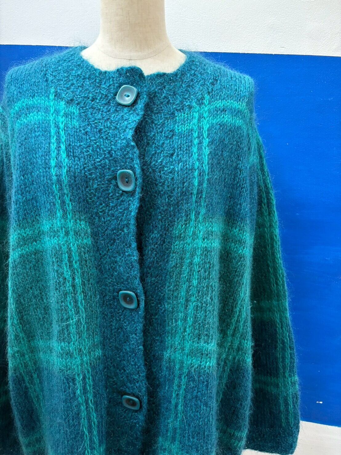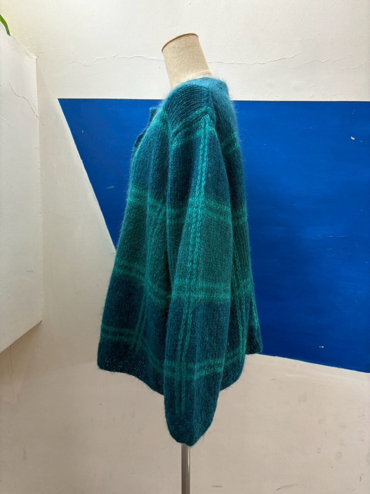 L/S USED 手編み チェック柄 ワイドシルエット ニット カーディガン