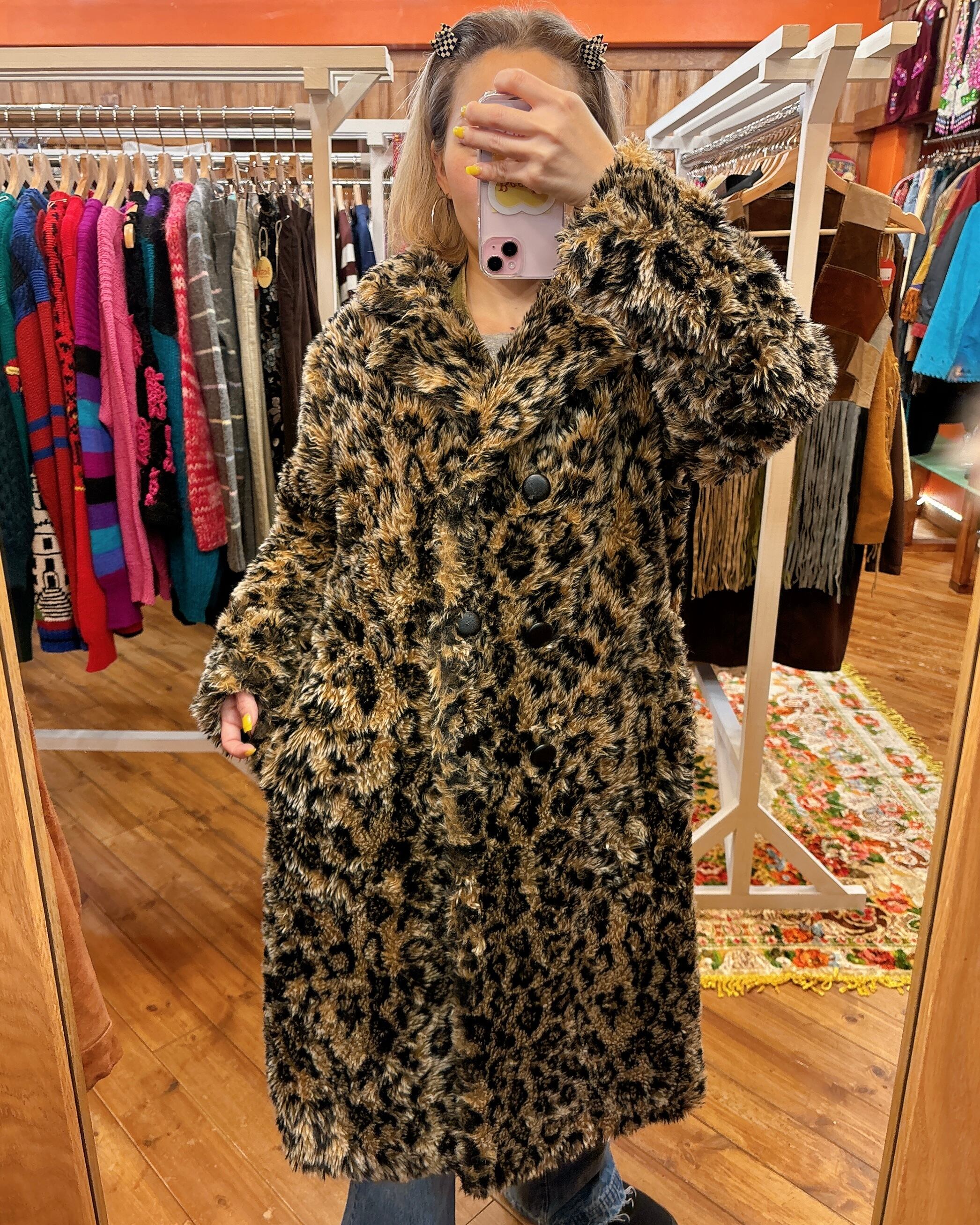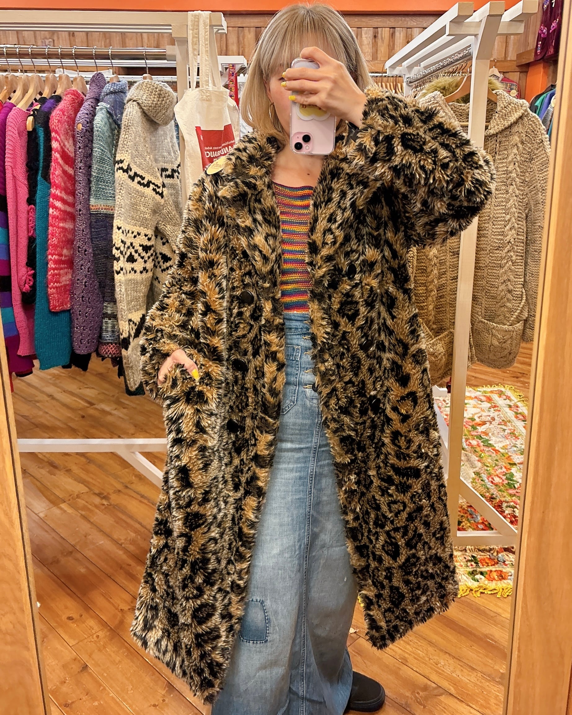 L/S レオパード柄 シャギー エコファー コート Eco fur coat/shaggy leopard