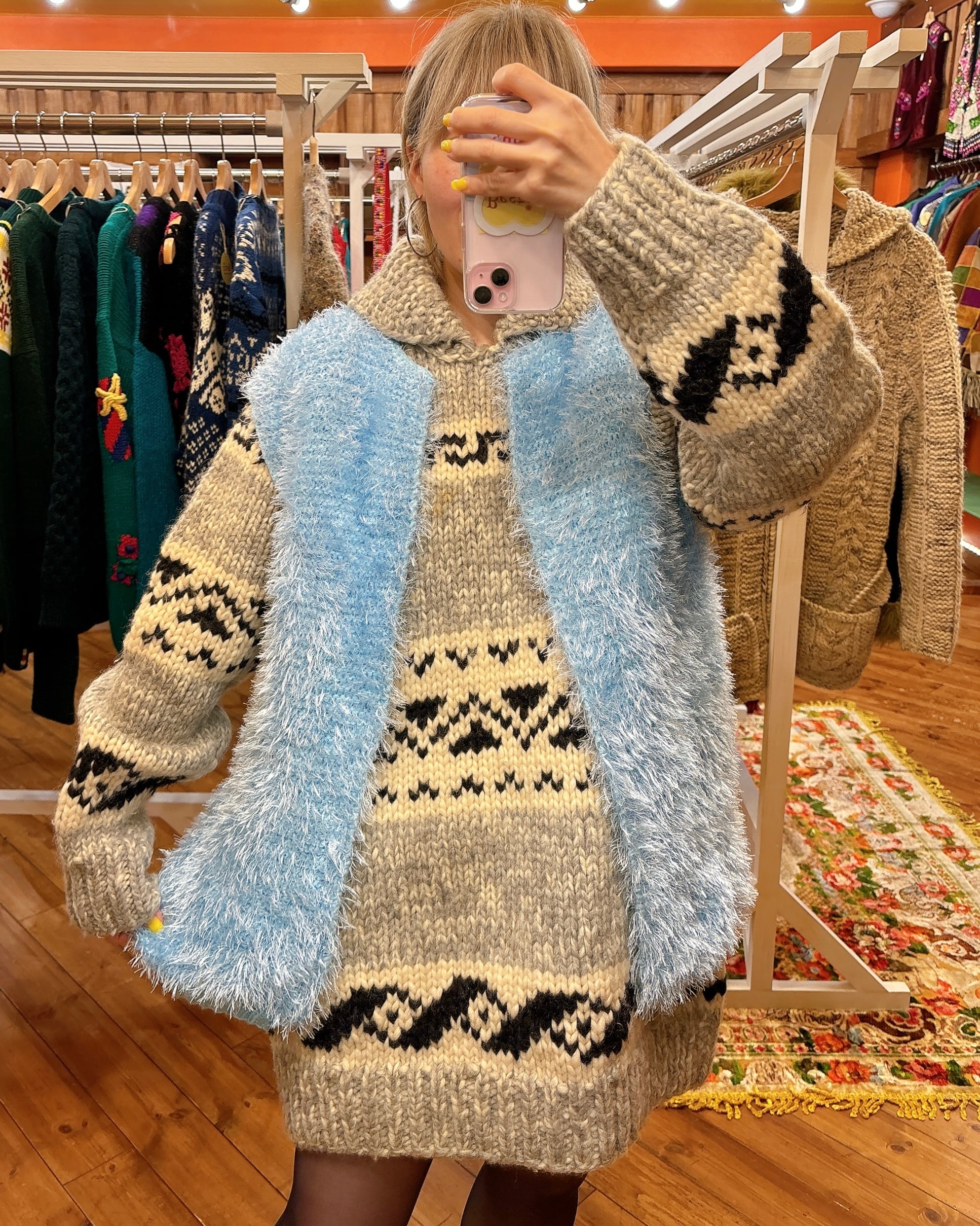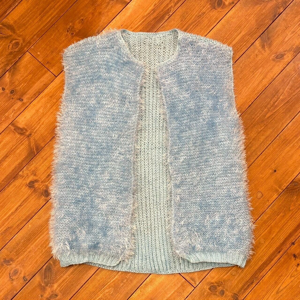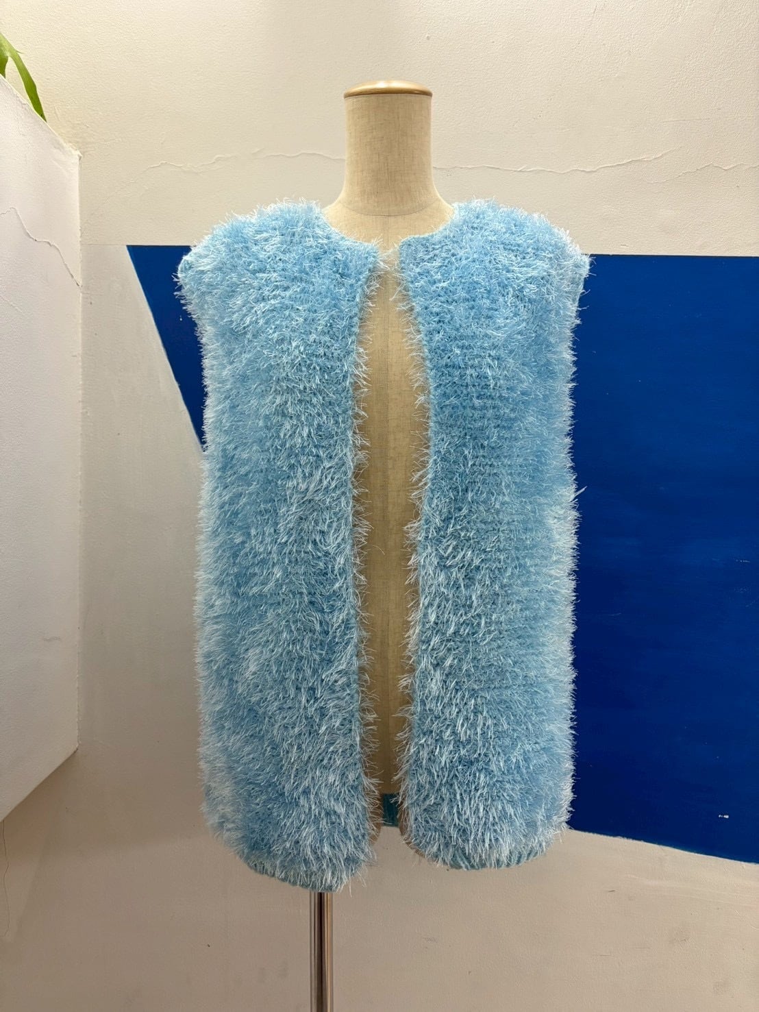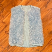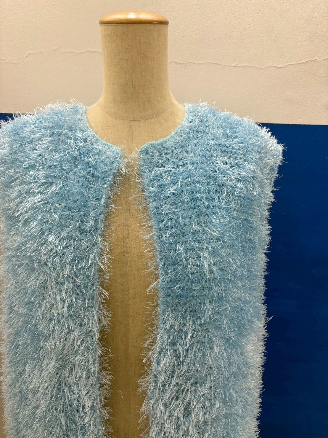 全面のみシャギーニットのふさふさになっている前開きベストです!!