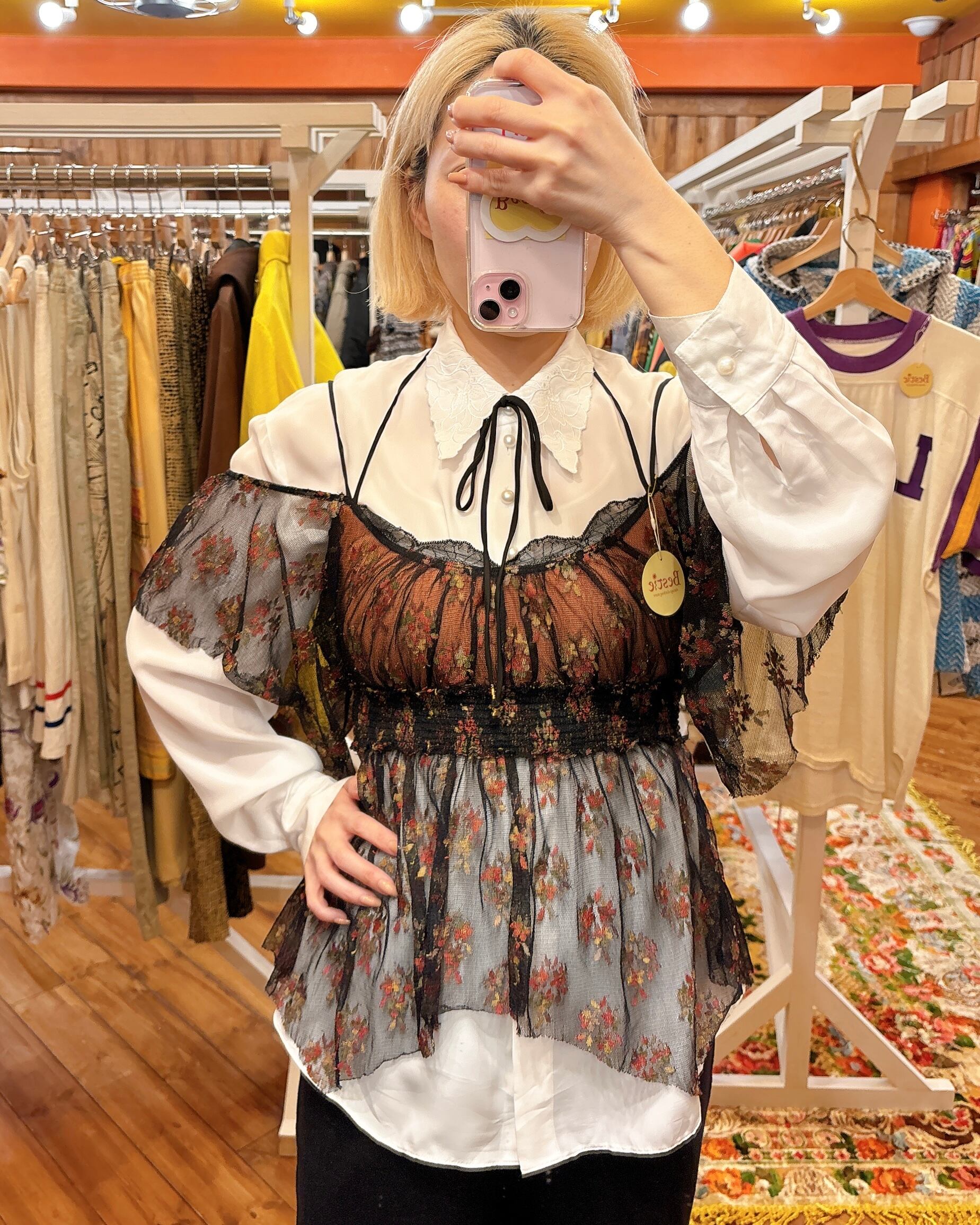 透け感あるチュールと、紐のデザインがかわいいトップスです!!