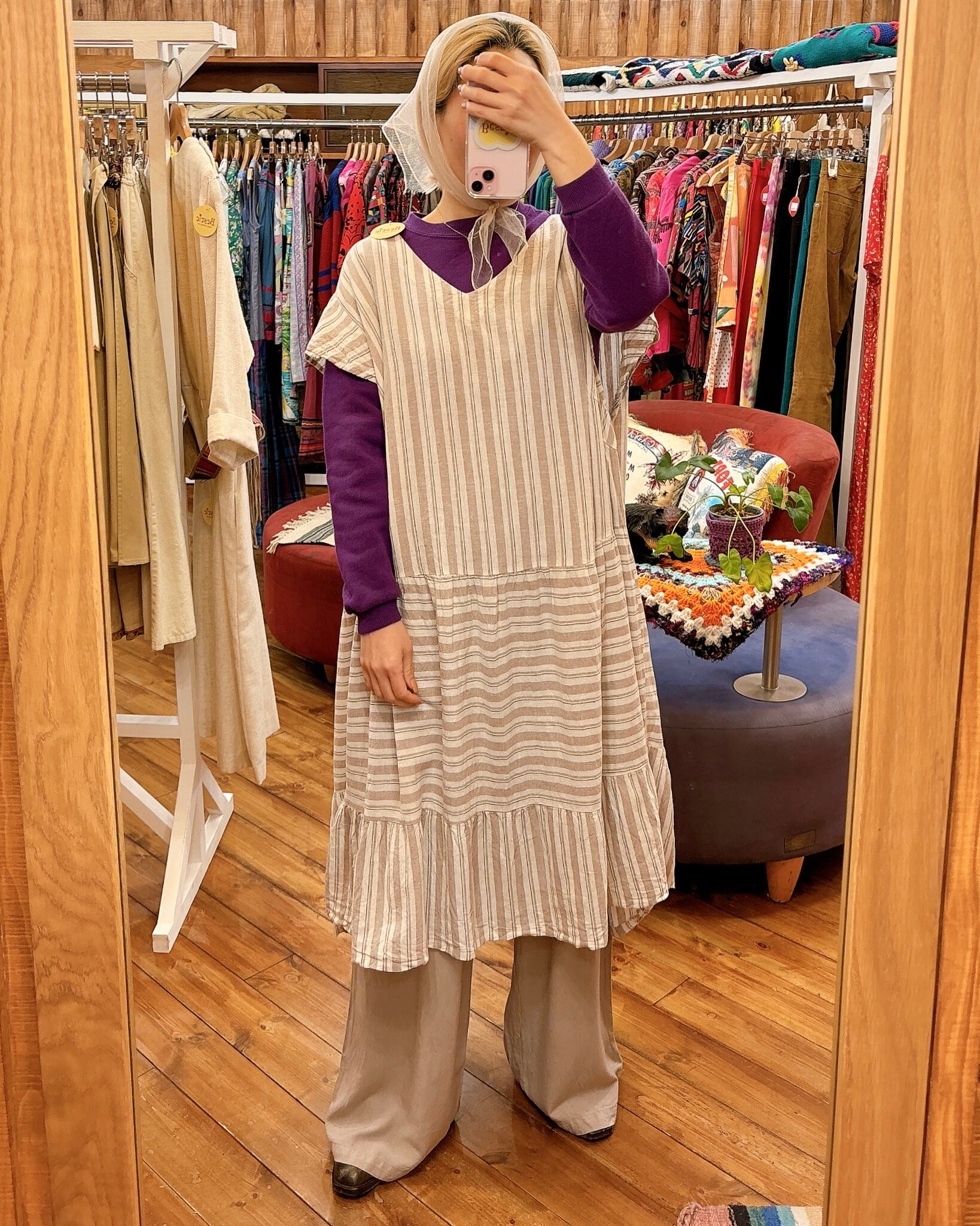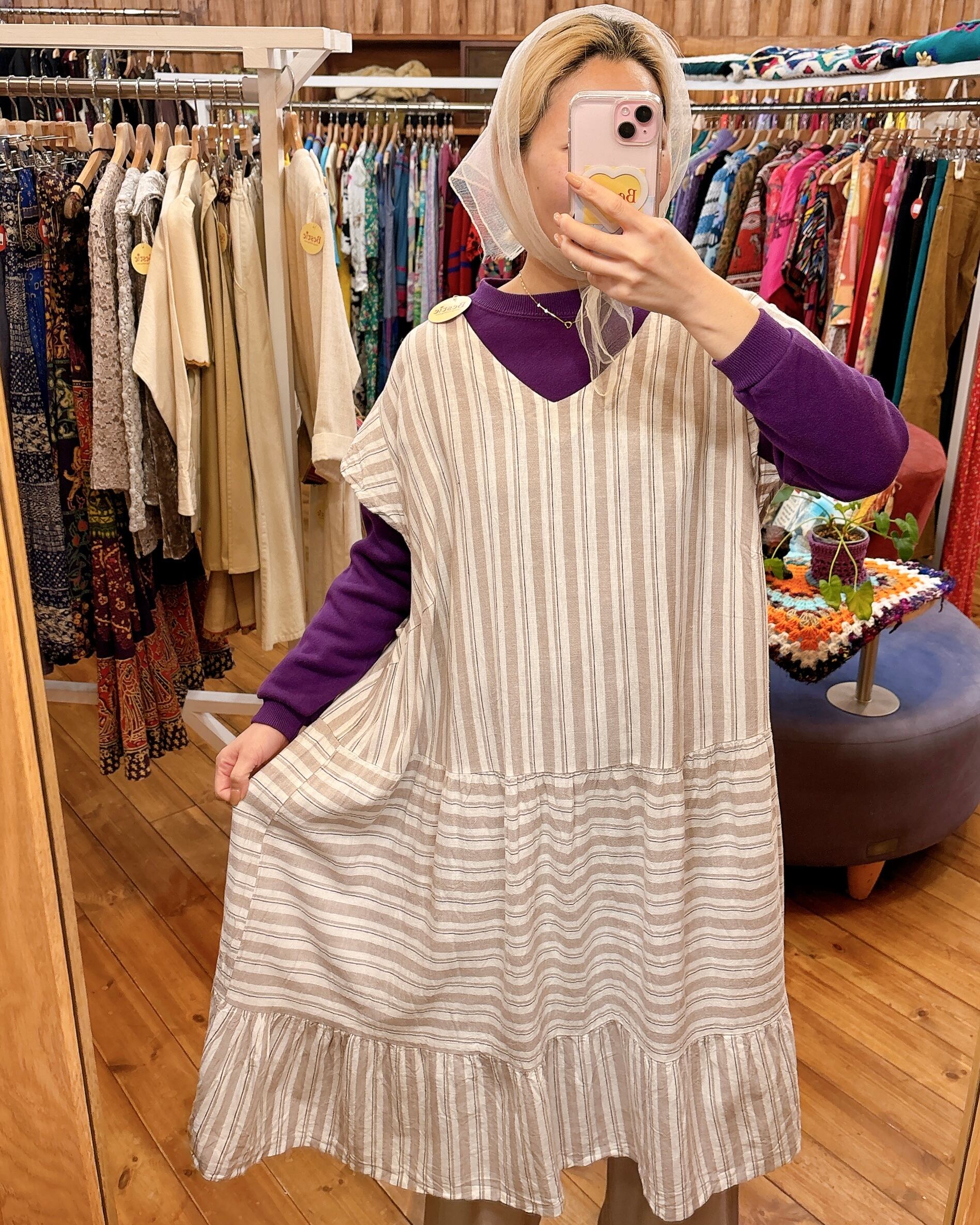 S/S linen stripe dress