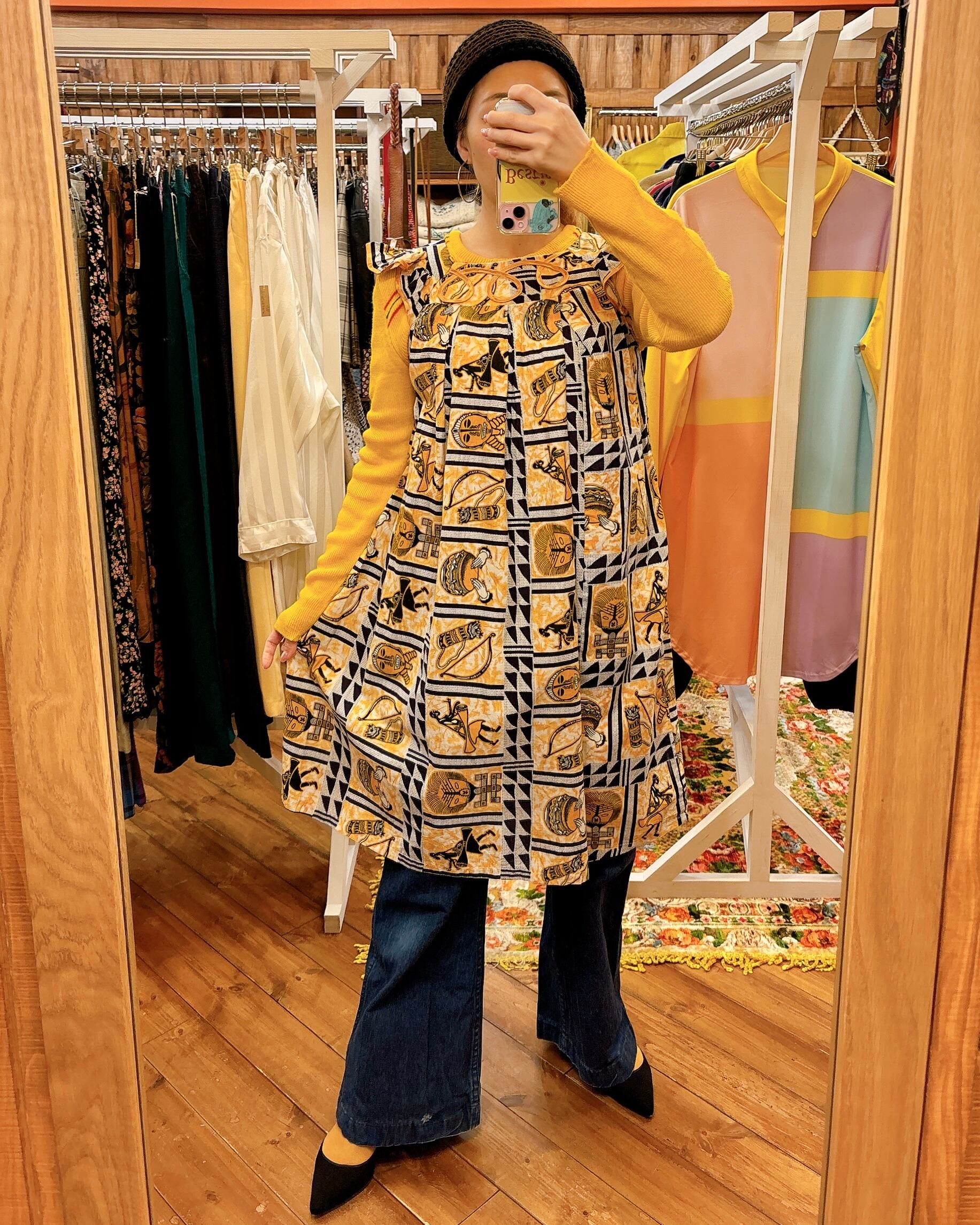 アフリカンバティック太鼓柄のワンピースです。