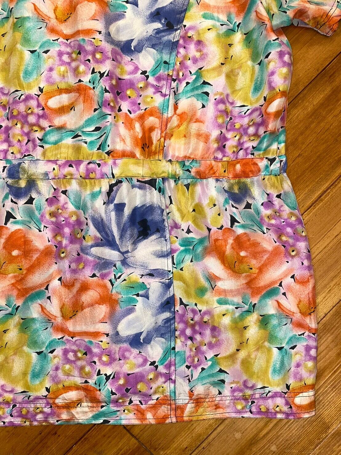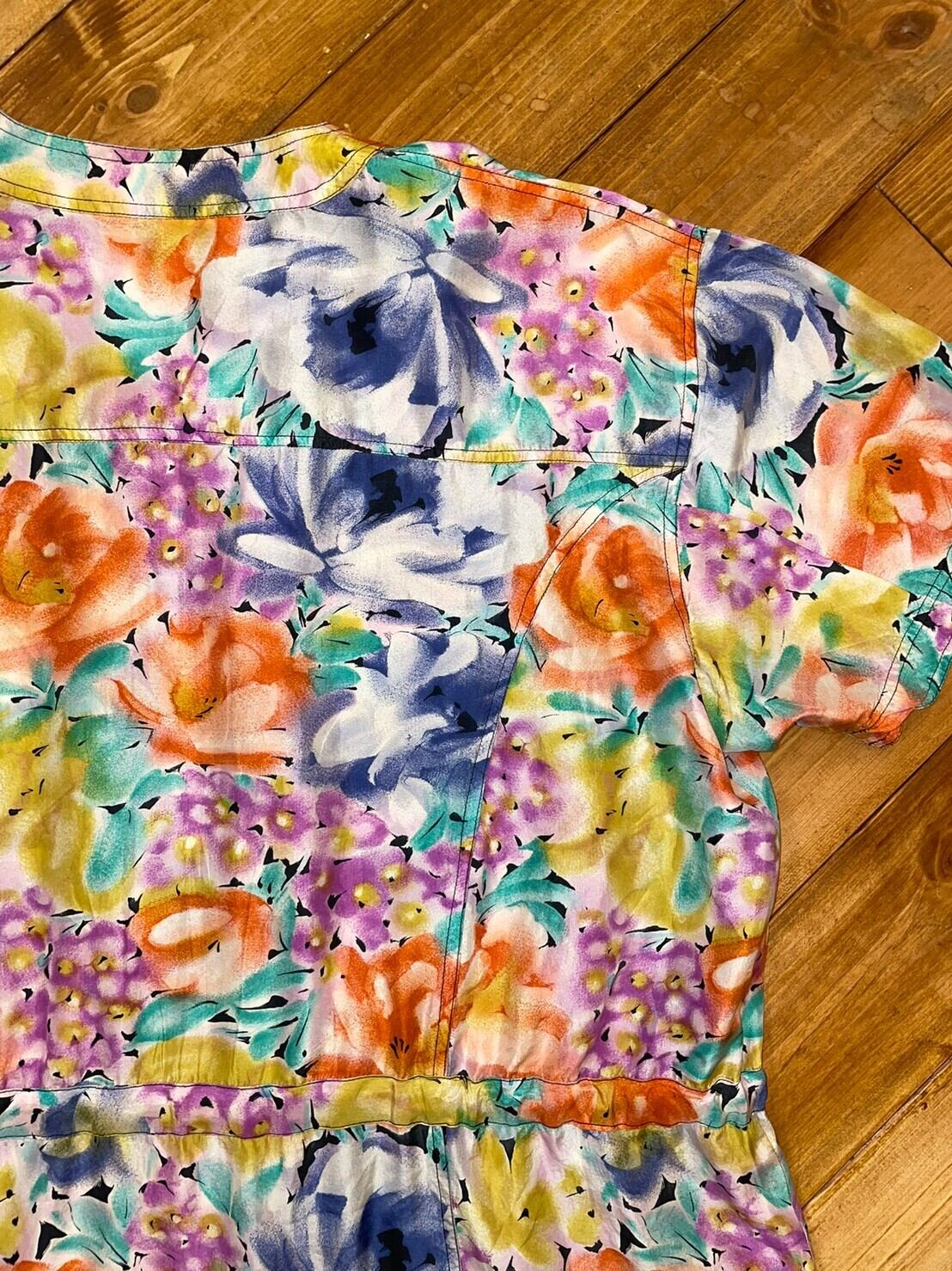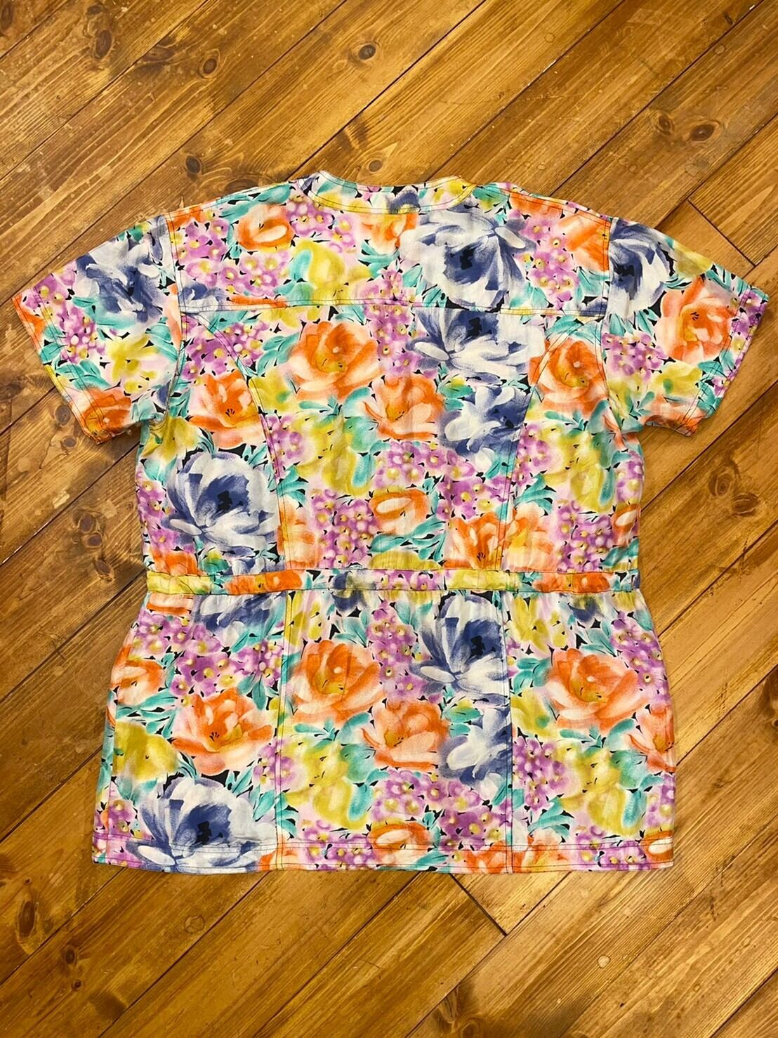 S/S 花柄 前開き ウエストコード入り シルク トップス