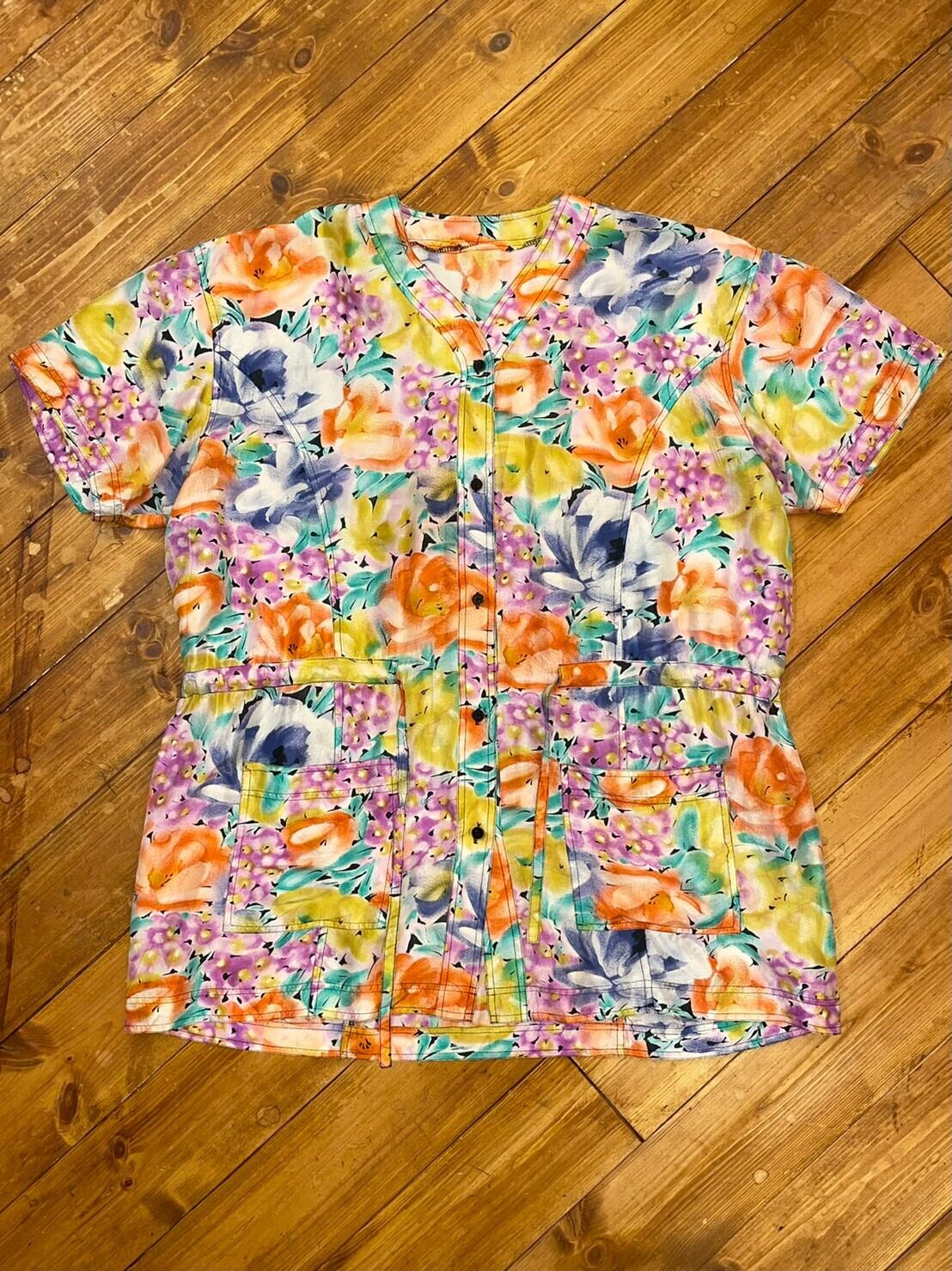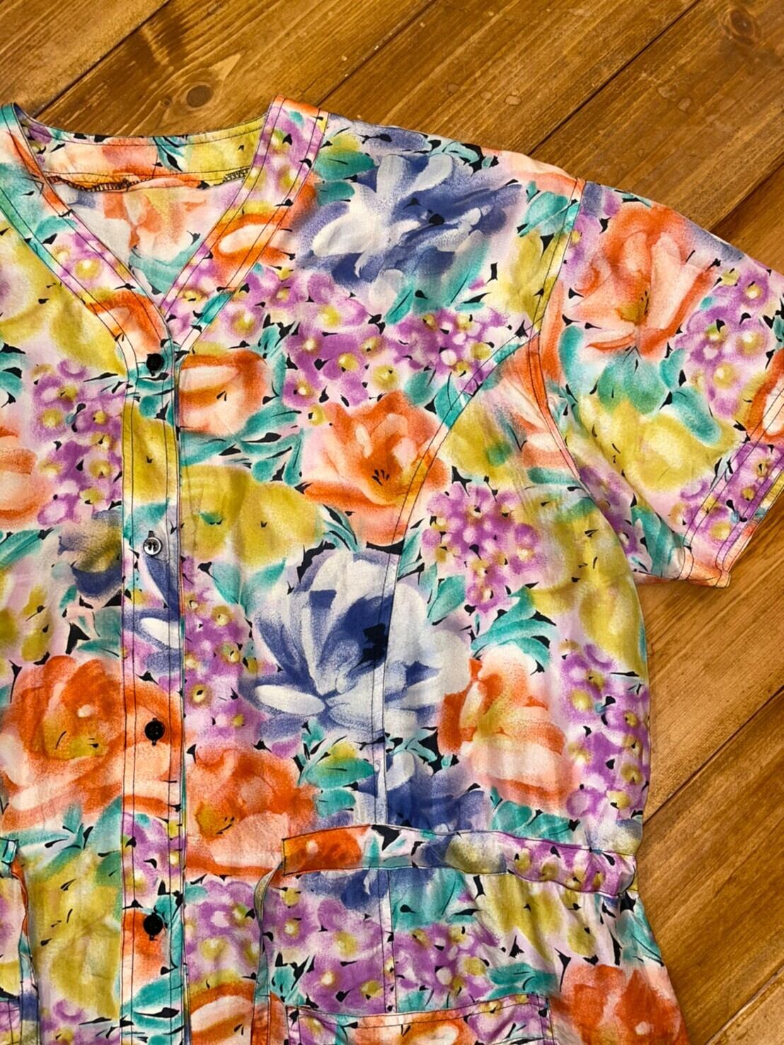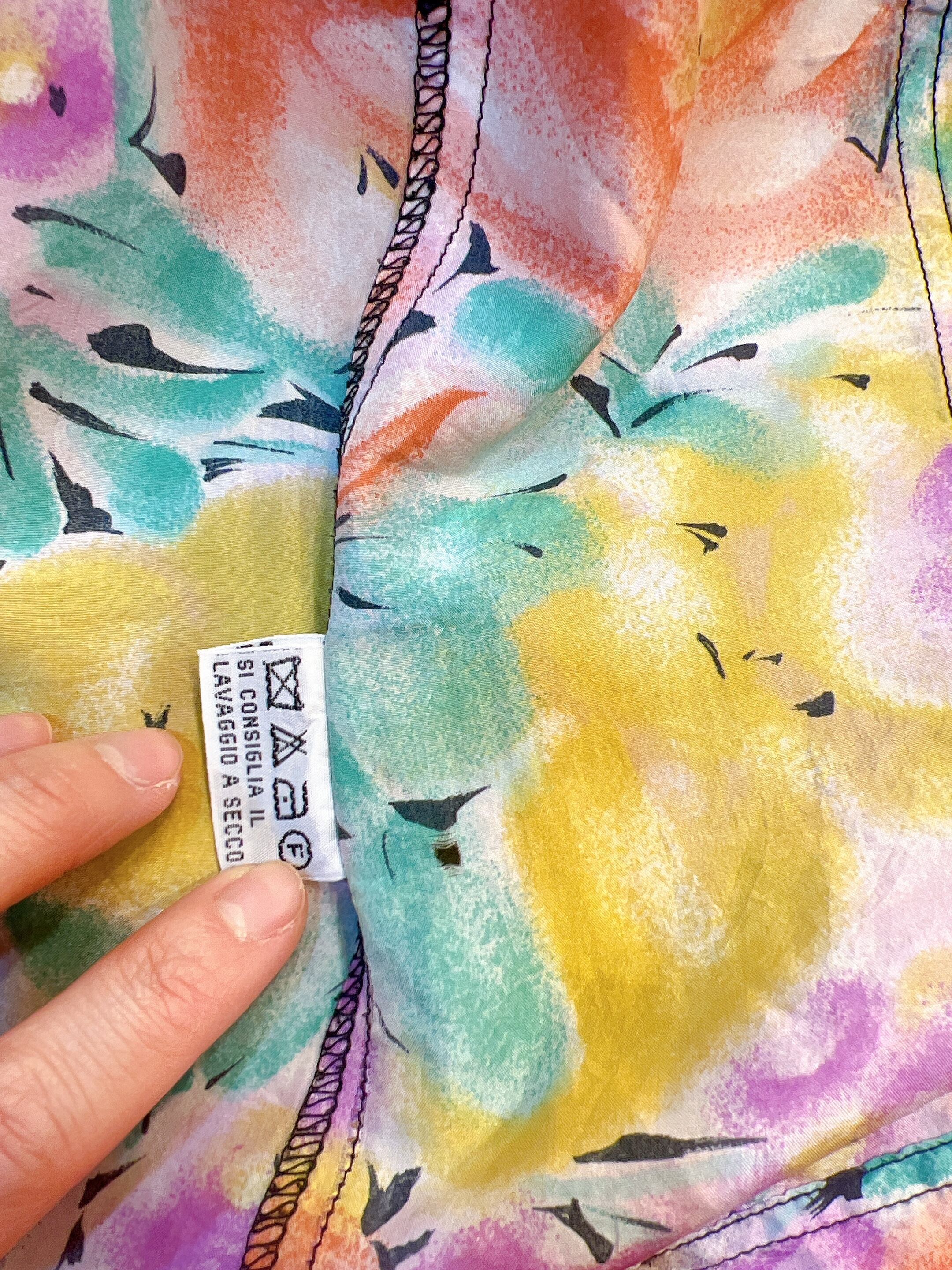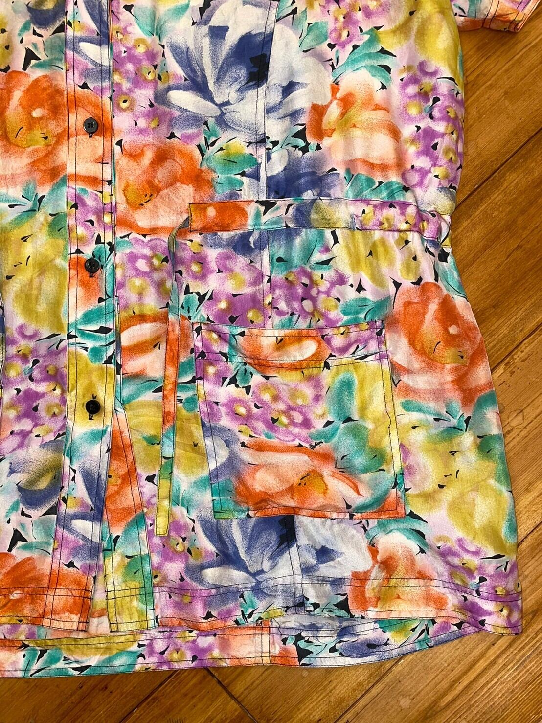 S/S 花柄 前開き ウエストコード入り シルク トップス