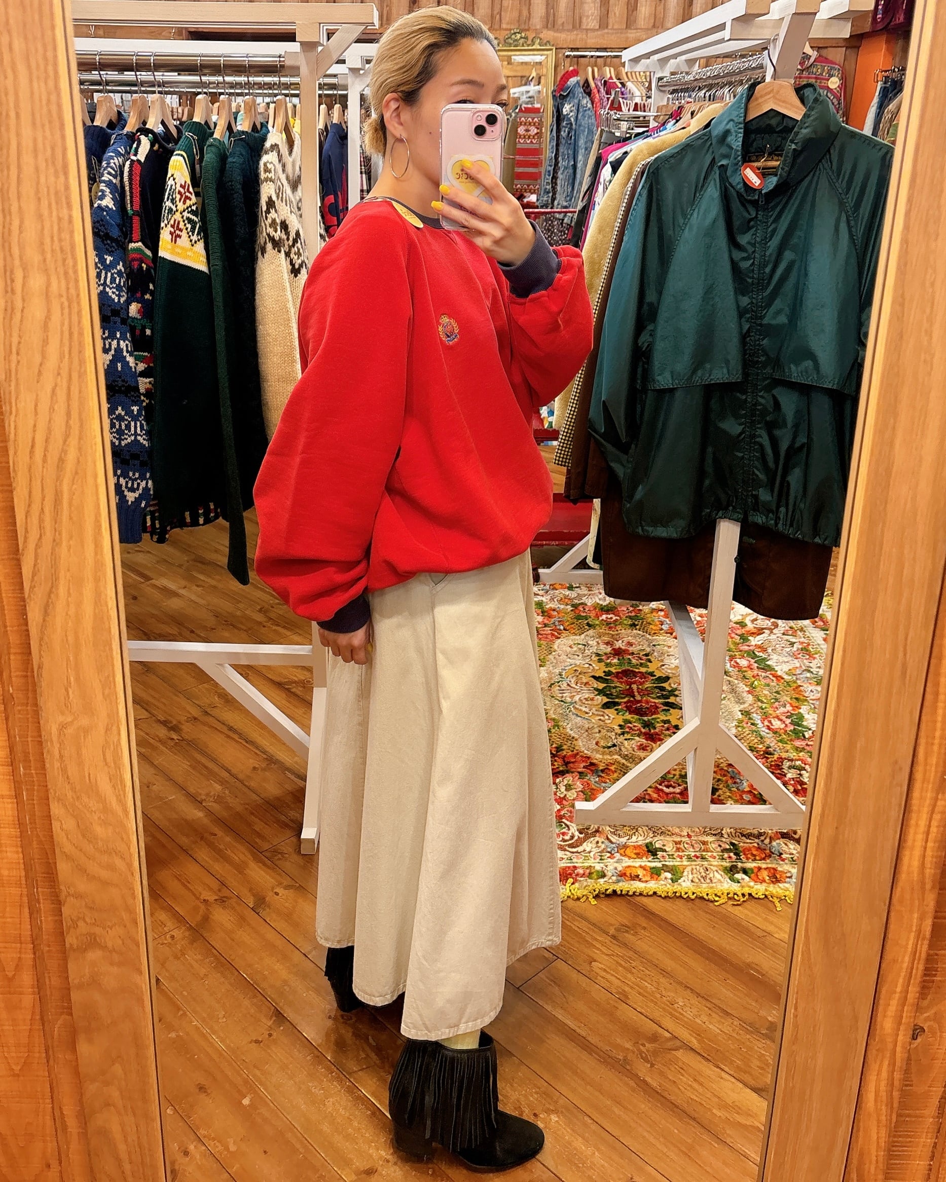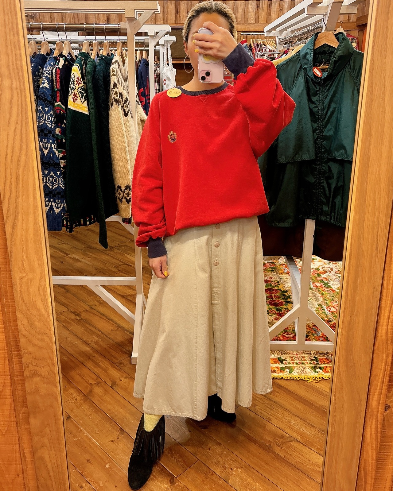 ◉採寸サイズ/肩幅(ラグラン袖のため計測不可) 身幅66cm 着丈67.5cm 袖丈(首リブ付け根〜袖先)78cm