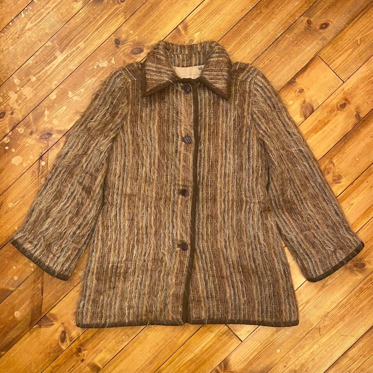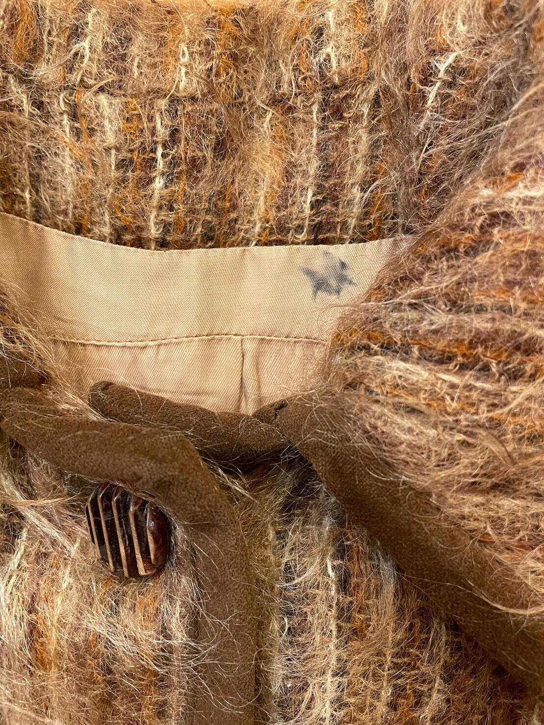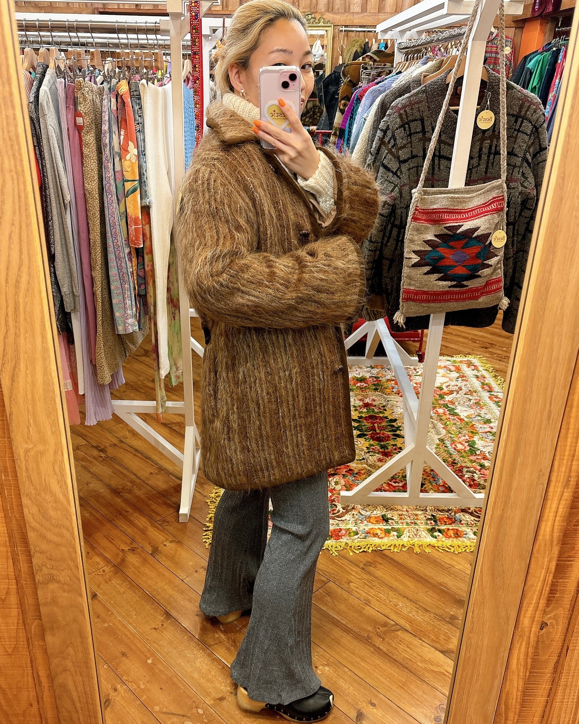 ボタンは木製、袖がややフレアになっていて羽織ったシルエットも綺麗です。