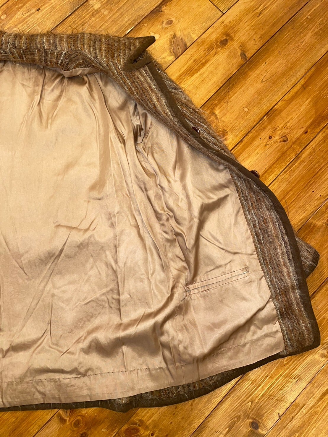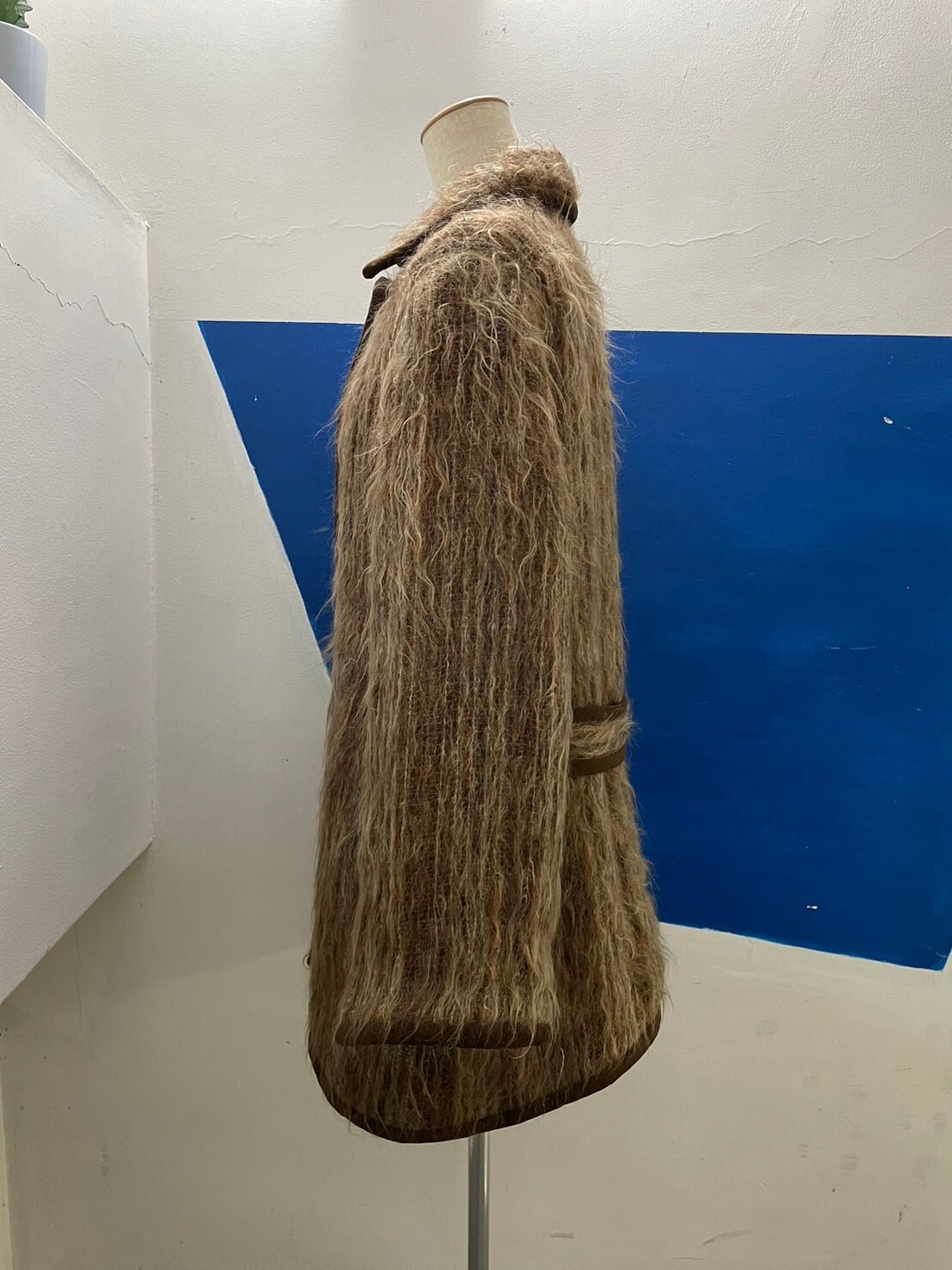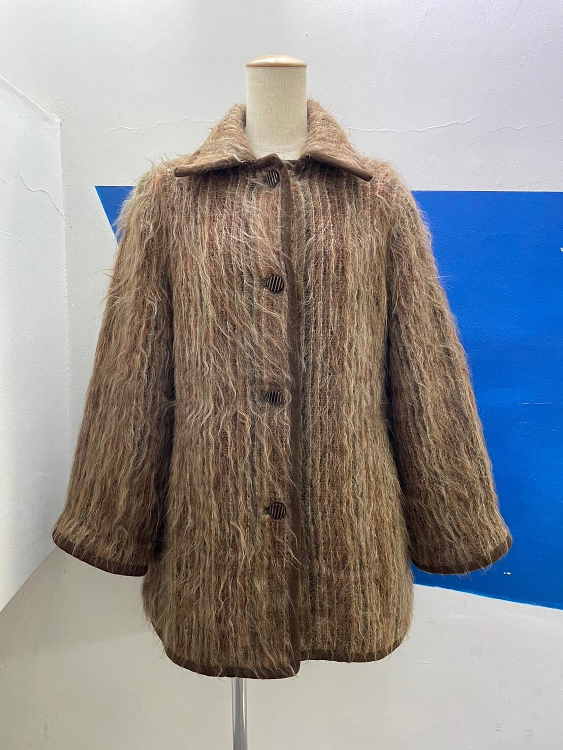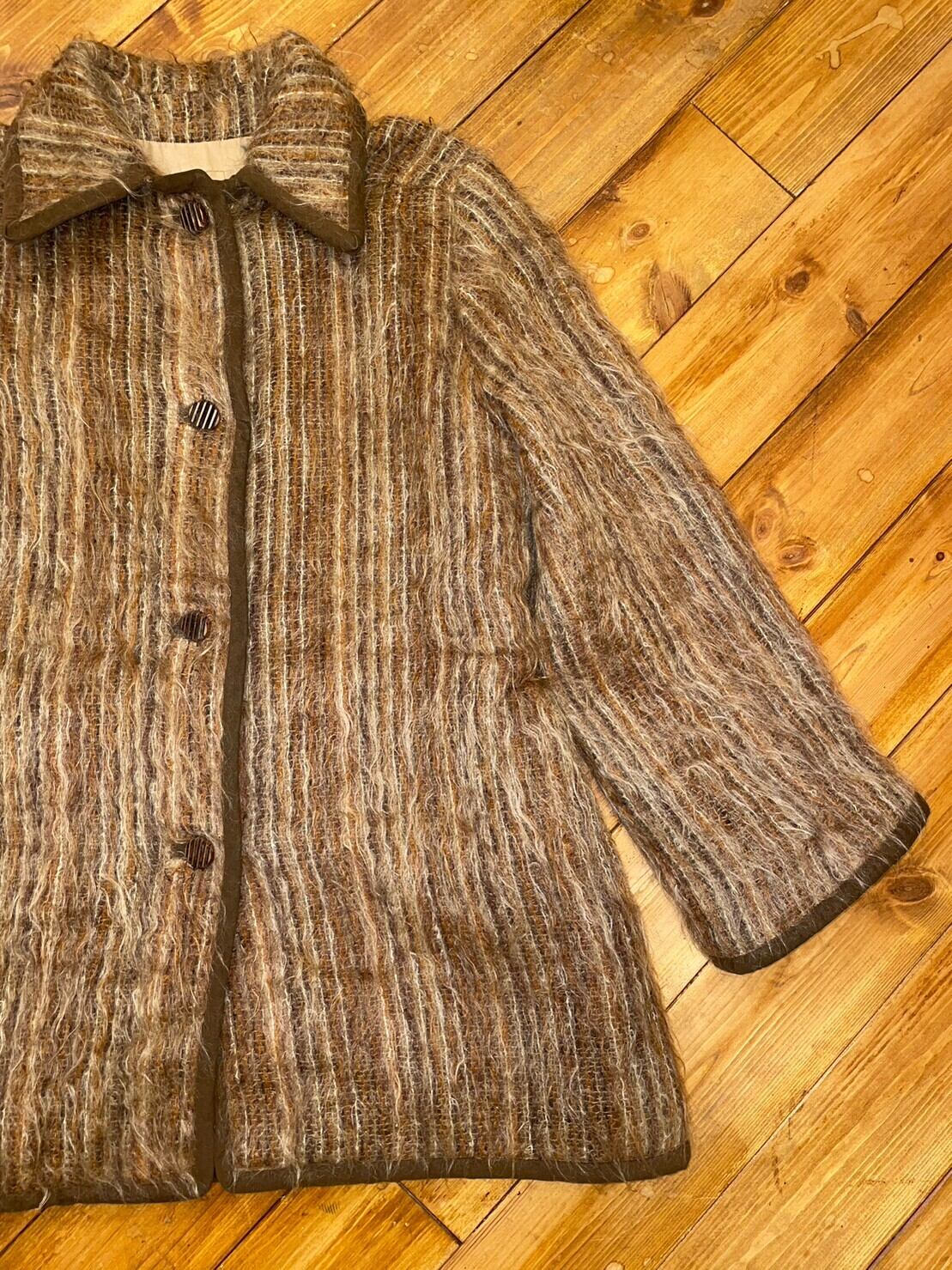 ボタンは木製、袖がややフレアになっていて羽織ったシルエットも綺麗です。