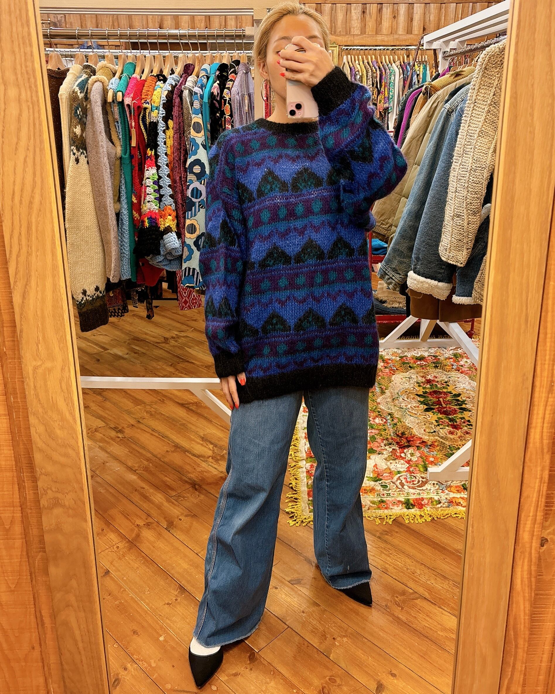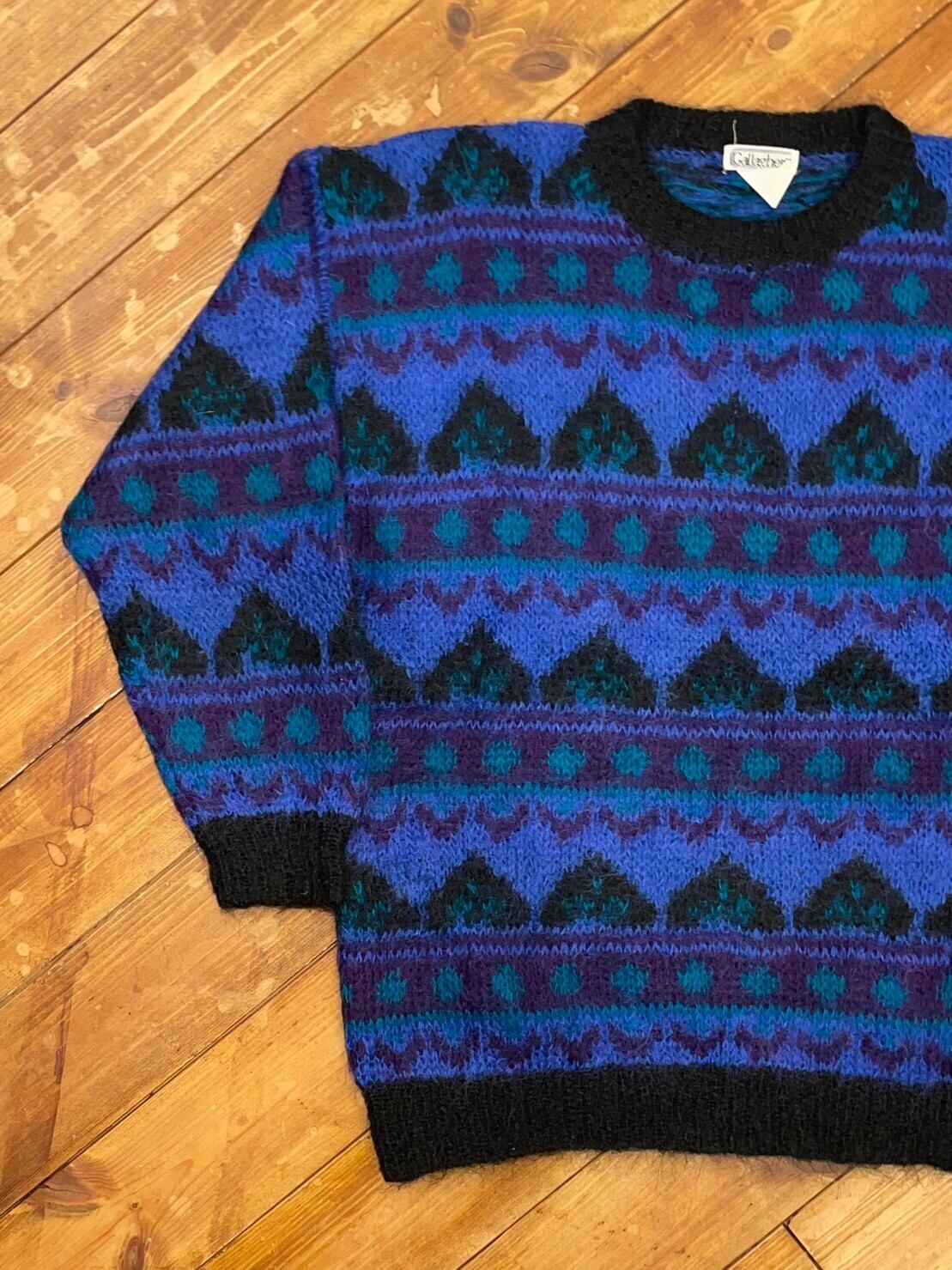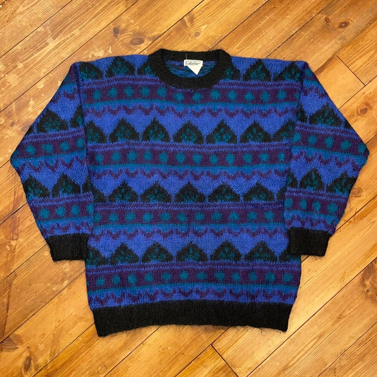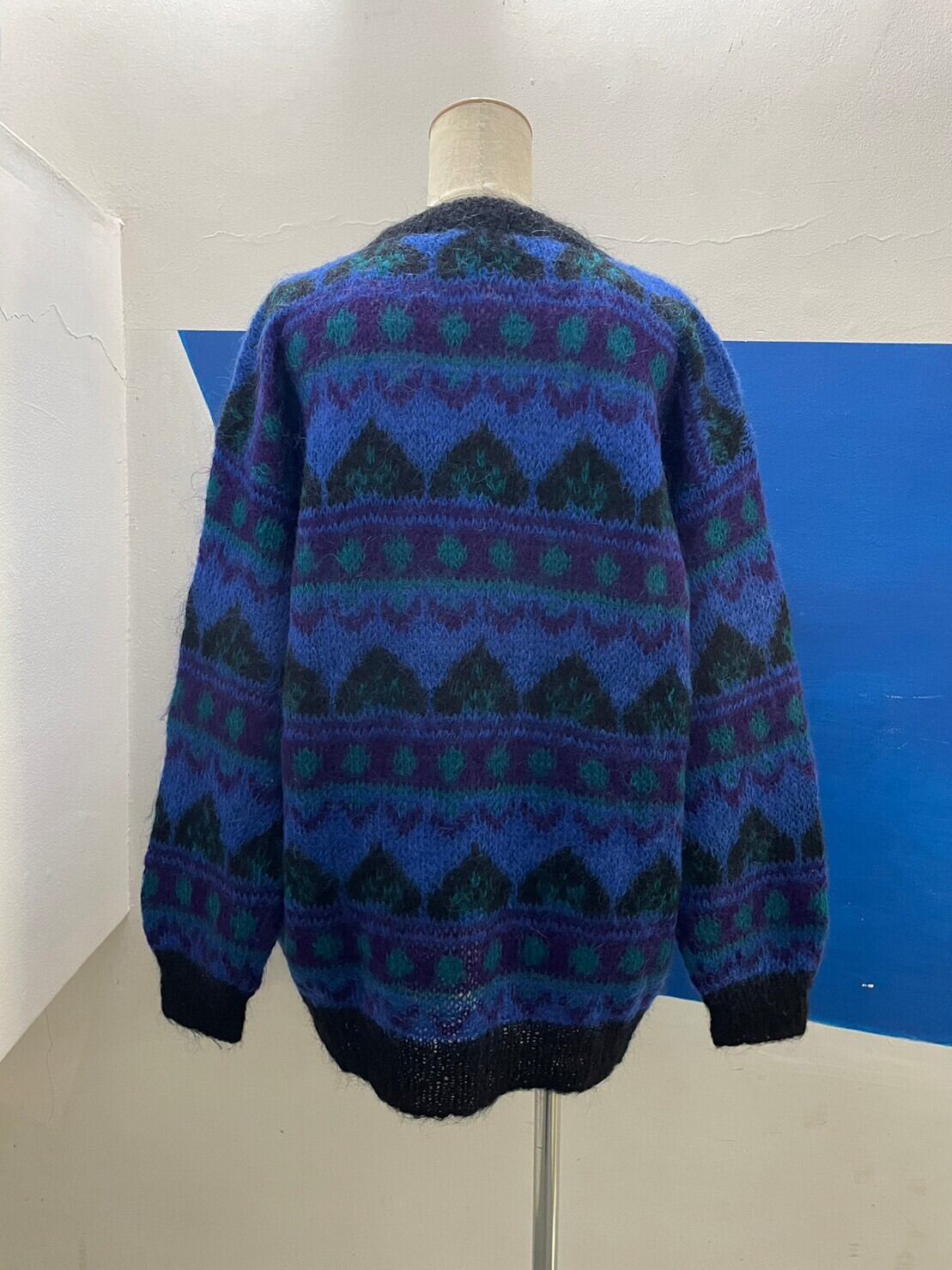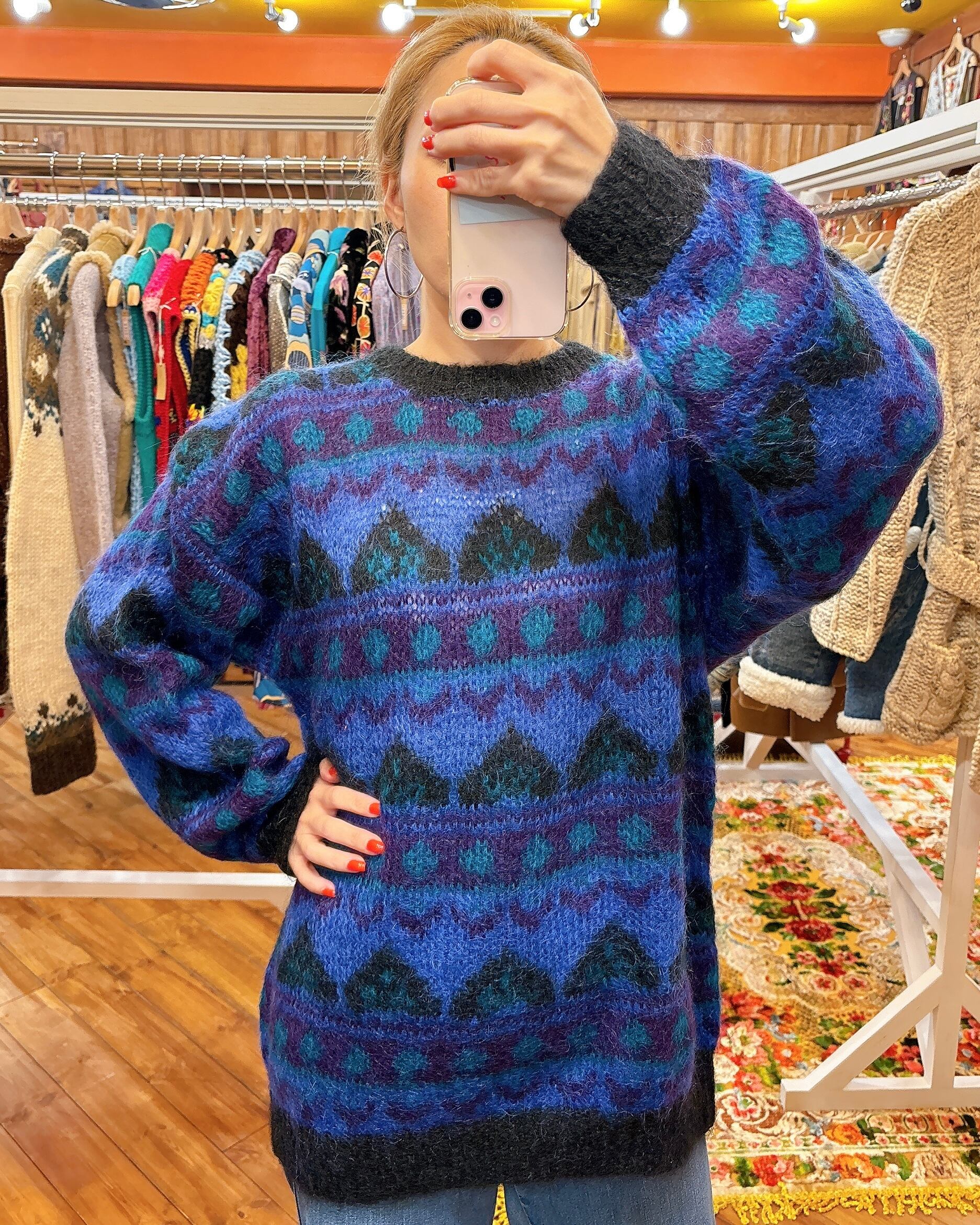 L/S モヘア混毛 プルオーバー ニット セーター 総柄
