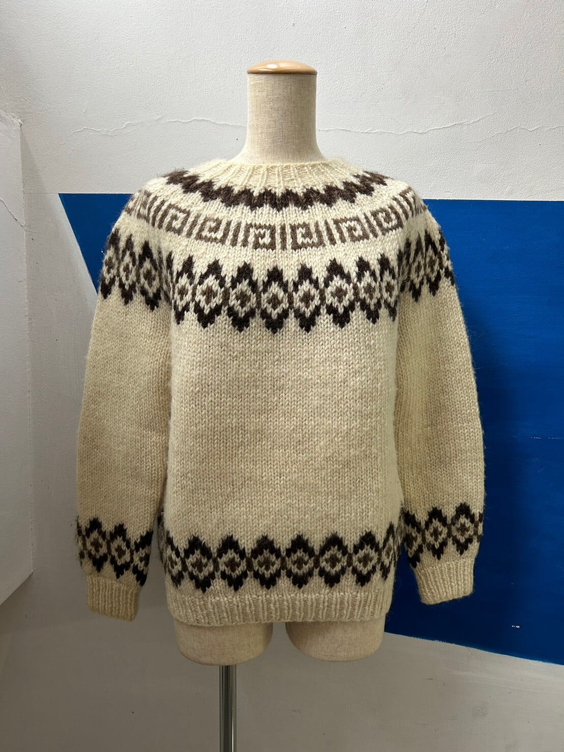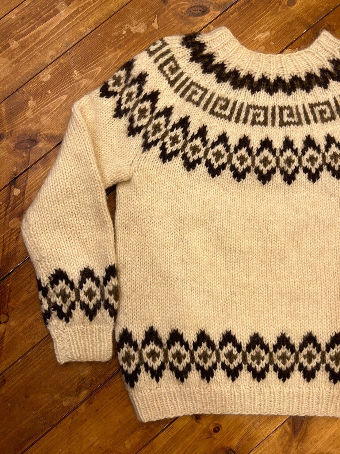 【L/S アイボリー/茶ノルディックセーター】