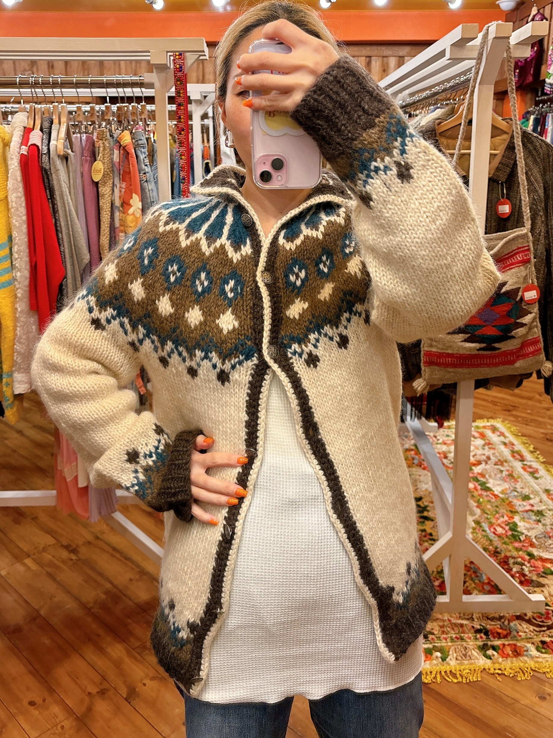 【L/S USED手編みハイネックノルディックニットカーディガン】