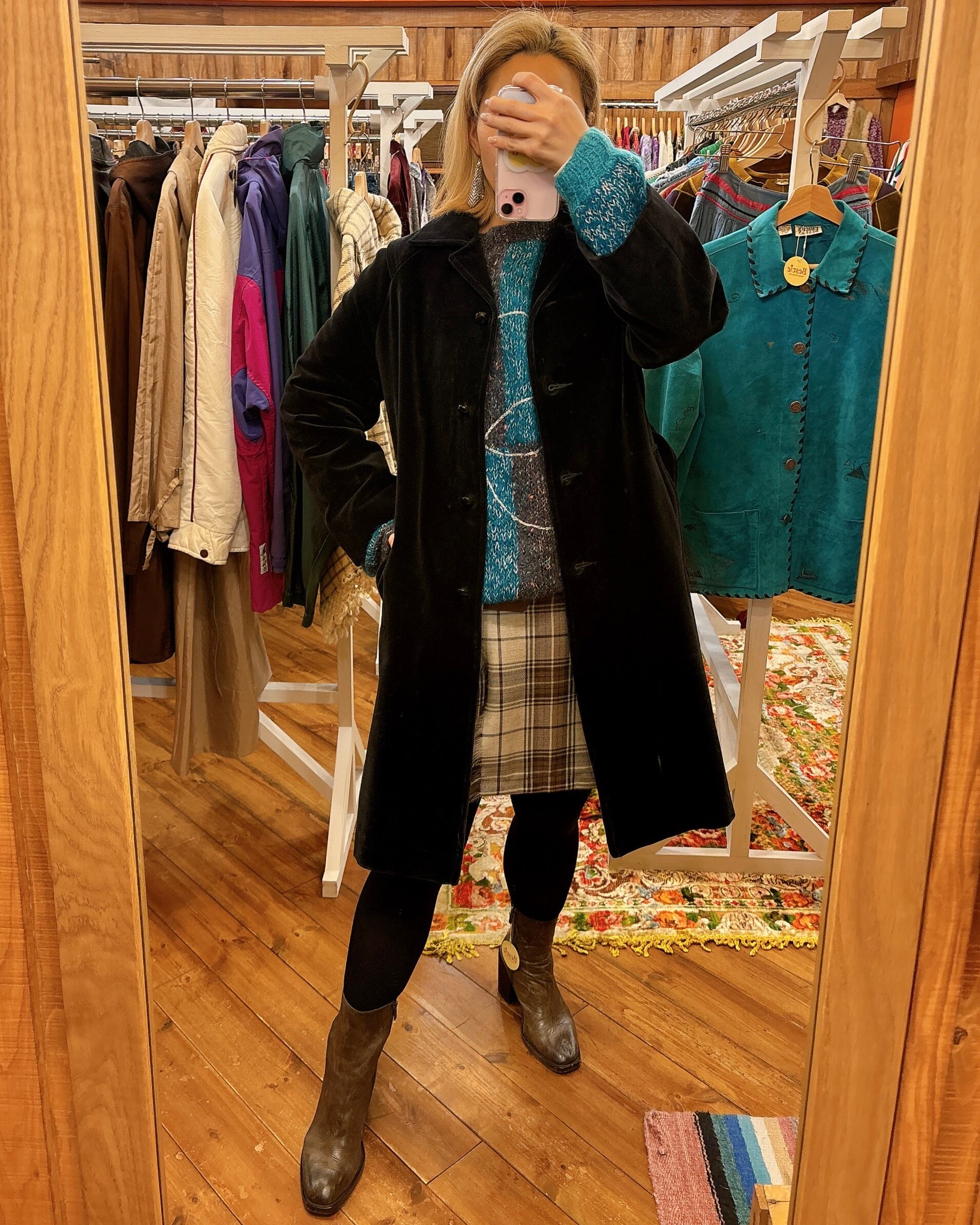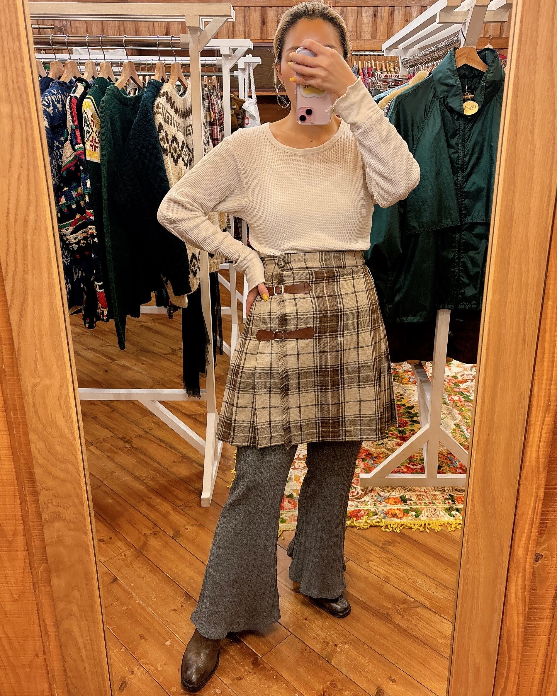 プリーツデザインですので広がりがあら可愛らしいです。カラーもベージュ系と馴染みよいので秋冬〜春もおすすめ!トップスはレタードニットやスエットなど合わせてカジュアルな古着らしいコーデも楽しめます♪