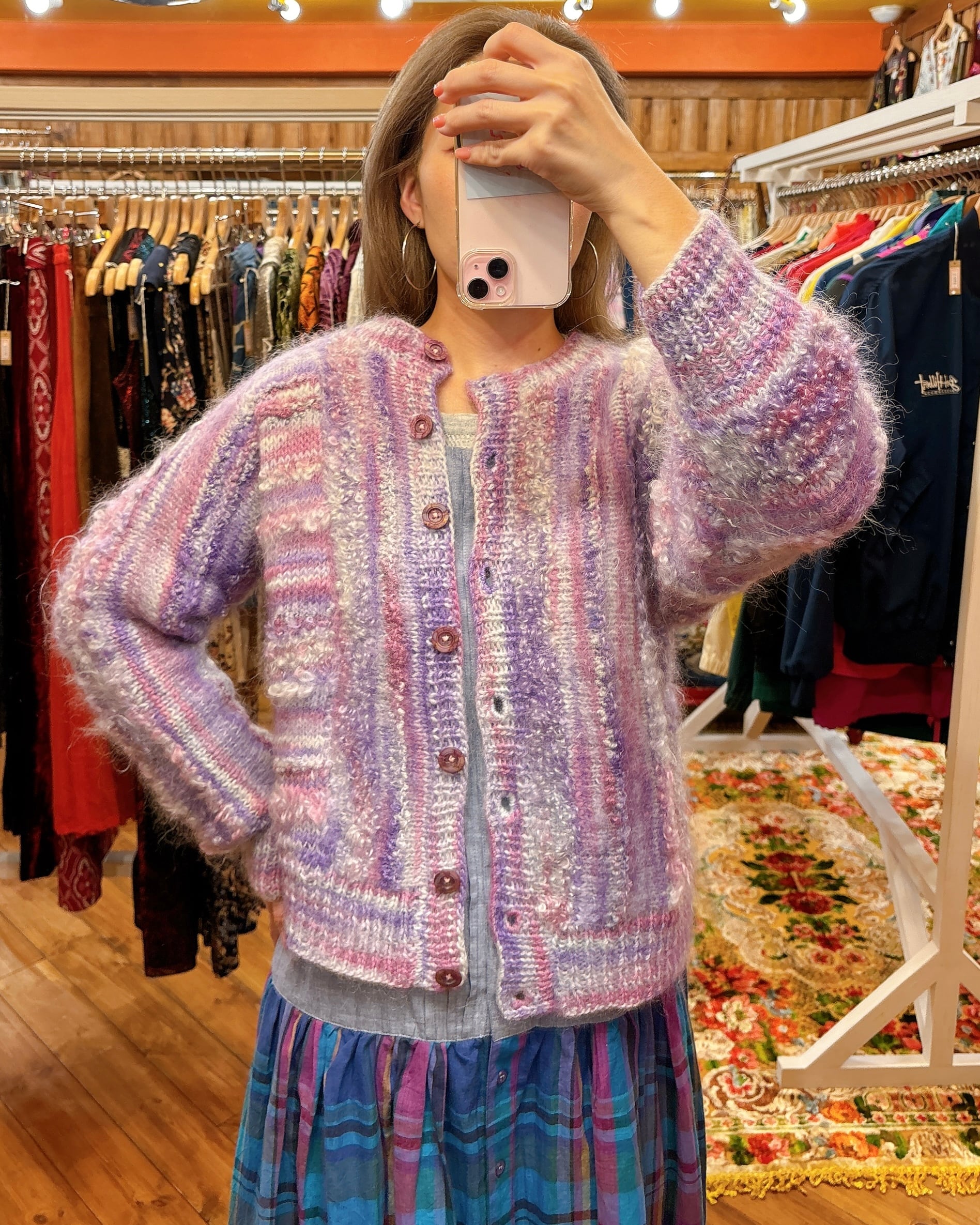 L/S ニット カーディガン モヘア混 マーブルカラー