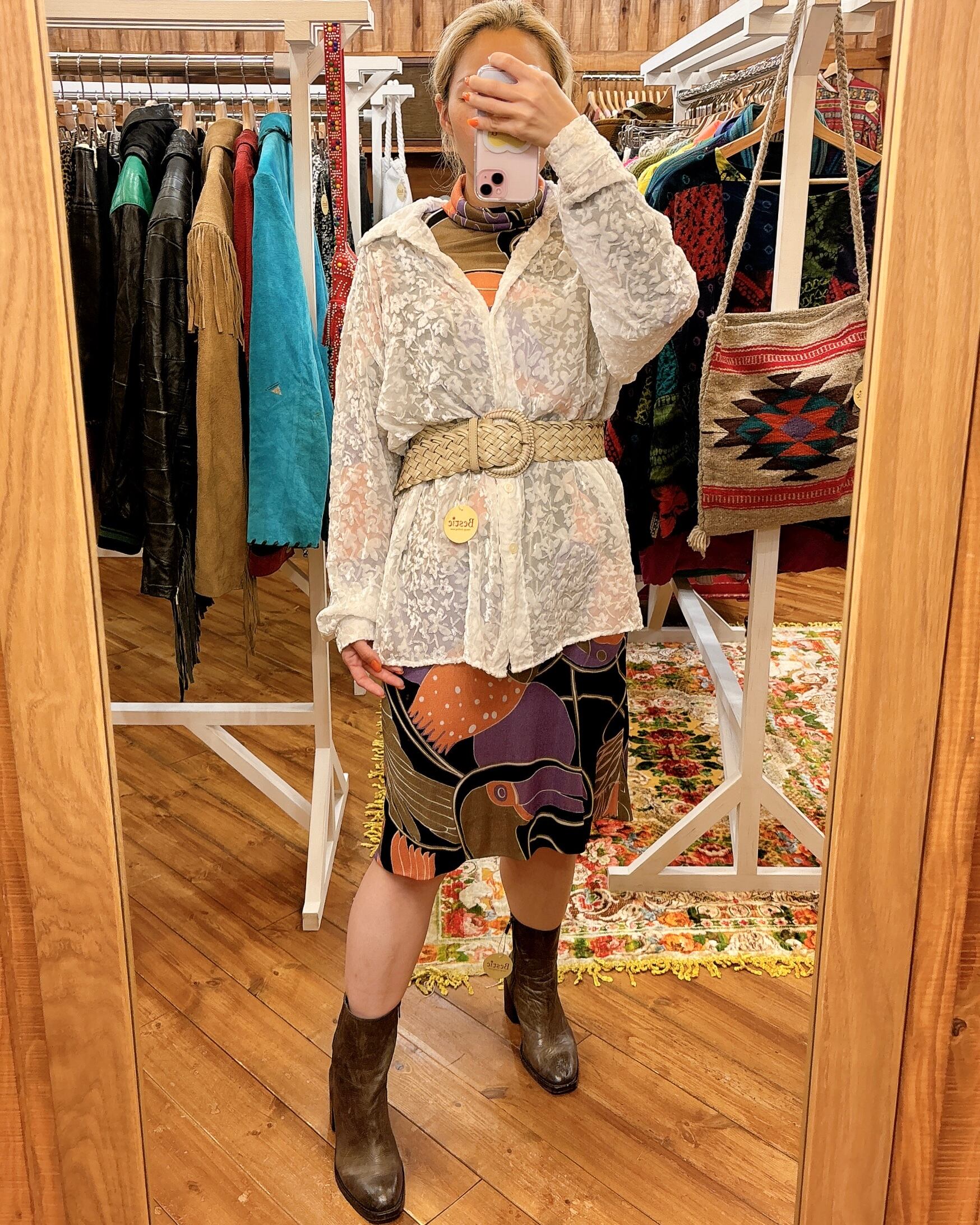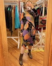 後ジップのプルオーバータイプのビンテージドレスです。大きな鳥柄がカッコいいです。