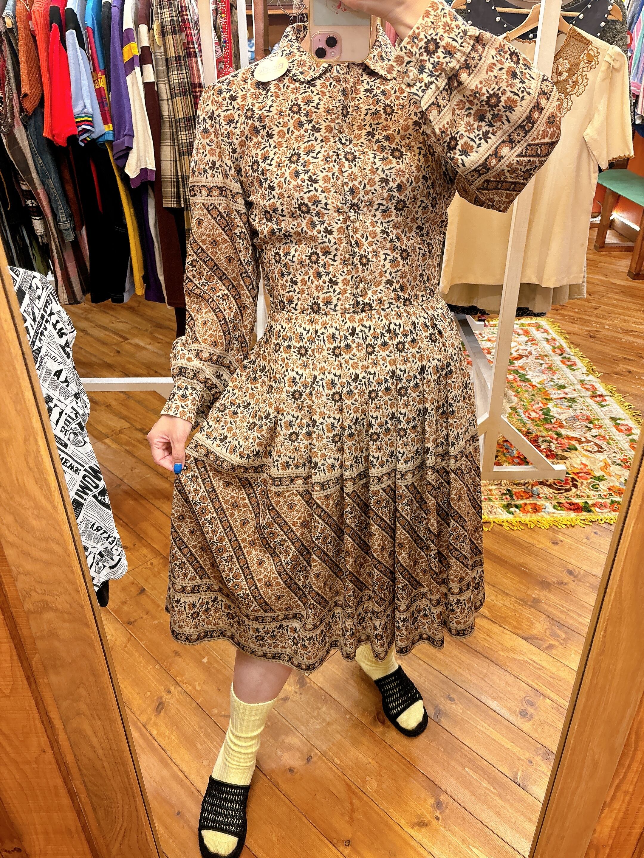 L/S 総柄/エスニック 丸襟 プルオーバー ワンピース