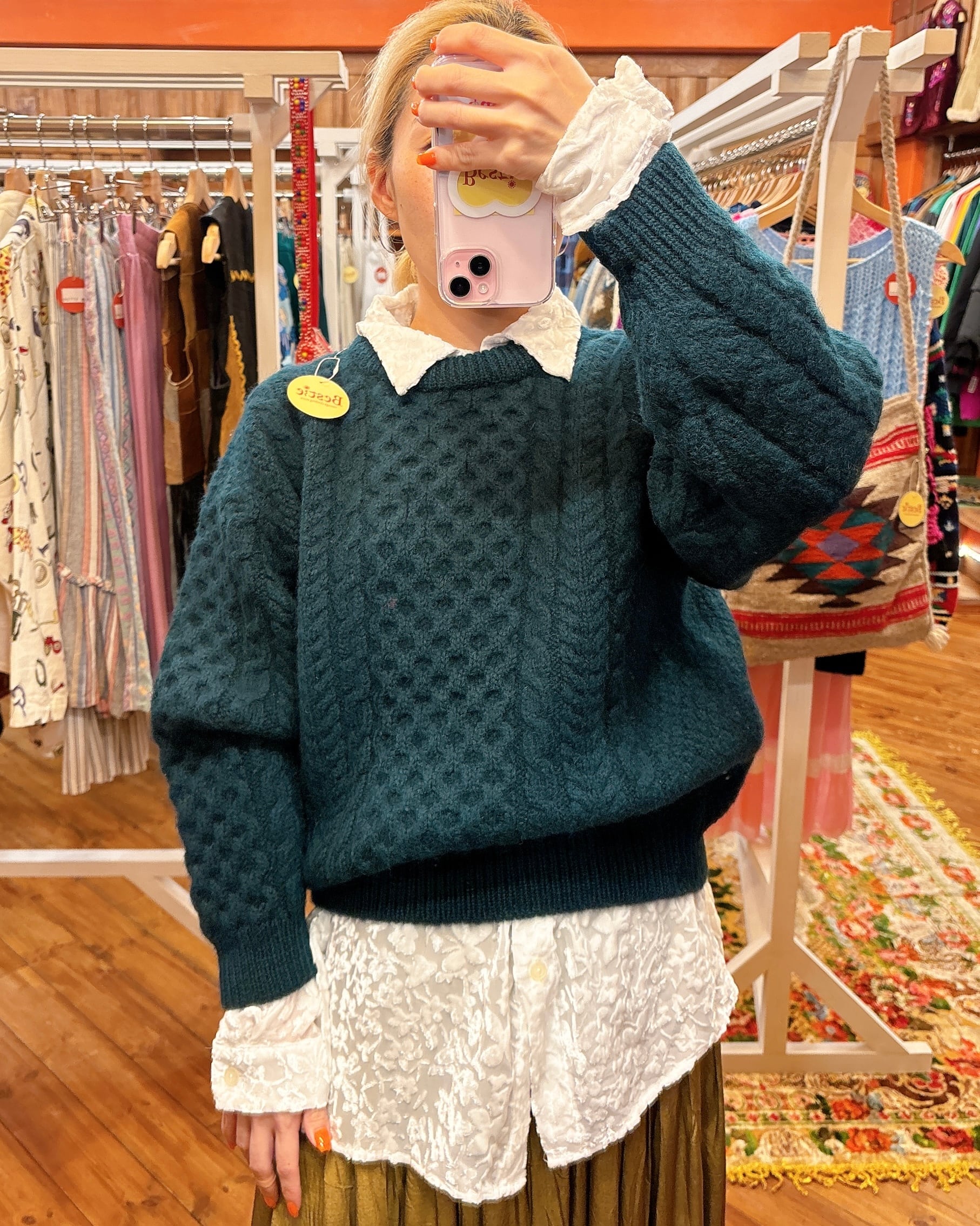 ※縮みが出ており、ニットの目がぎゅっと詰まった感じになっています。表記サイズではなく、採寸サイズをご参考になさって下さい。着用には問題ございません。
